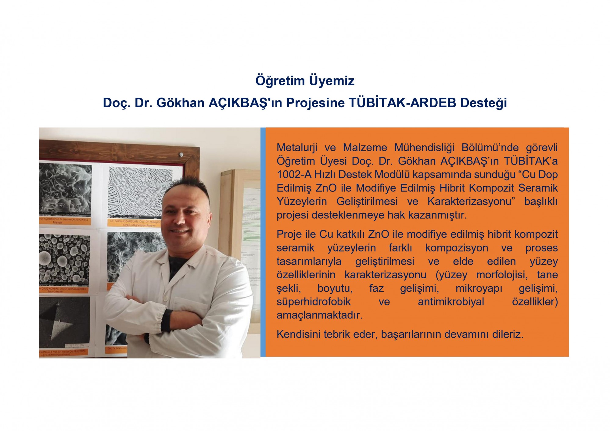 Öğretim Üyemiz Doç. Dr. Gökhan Açıkbaş'ın Projesine Tübitak-ardebdesteği...