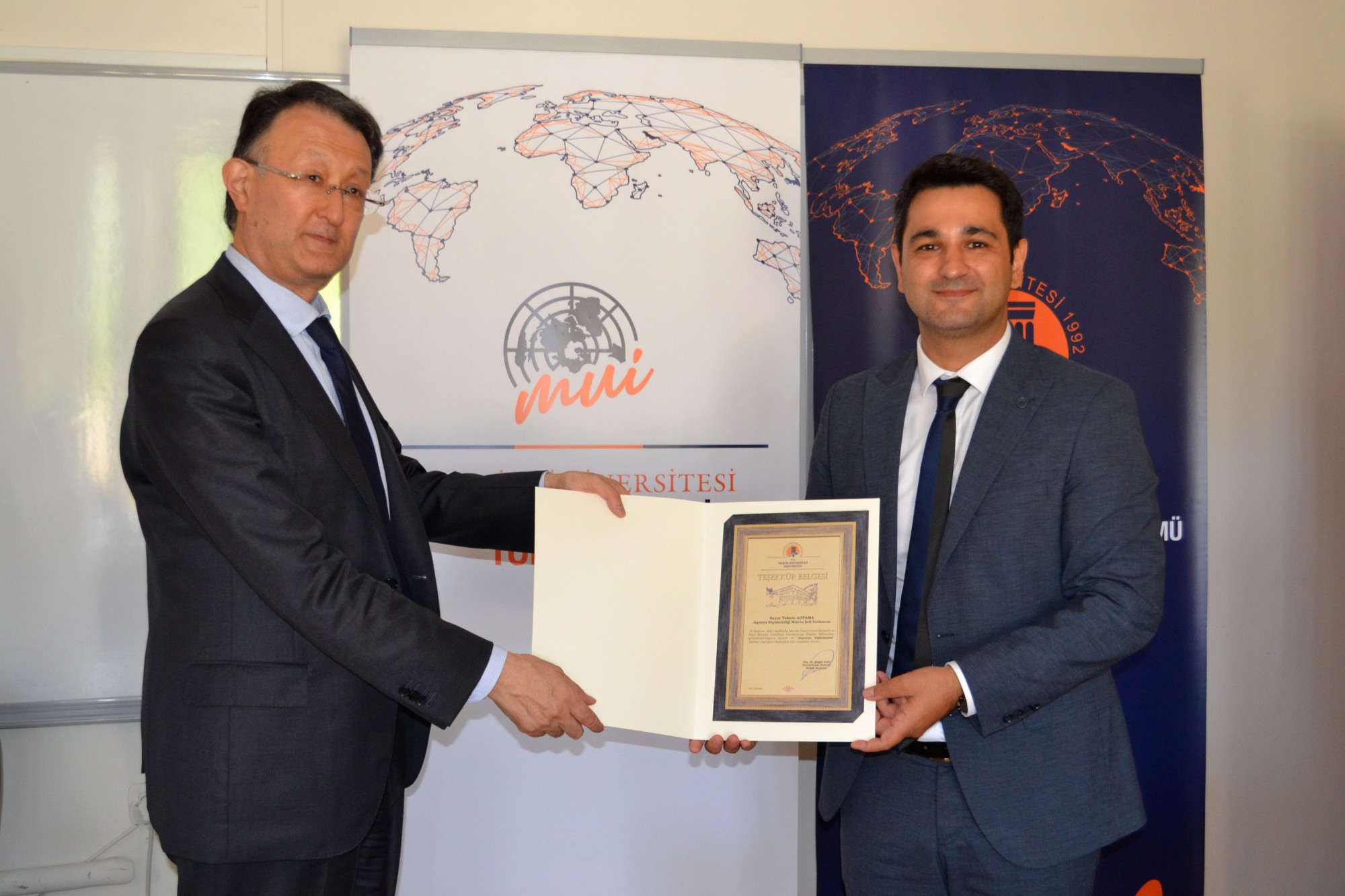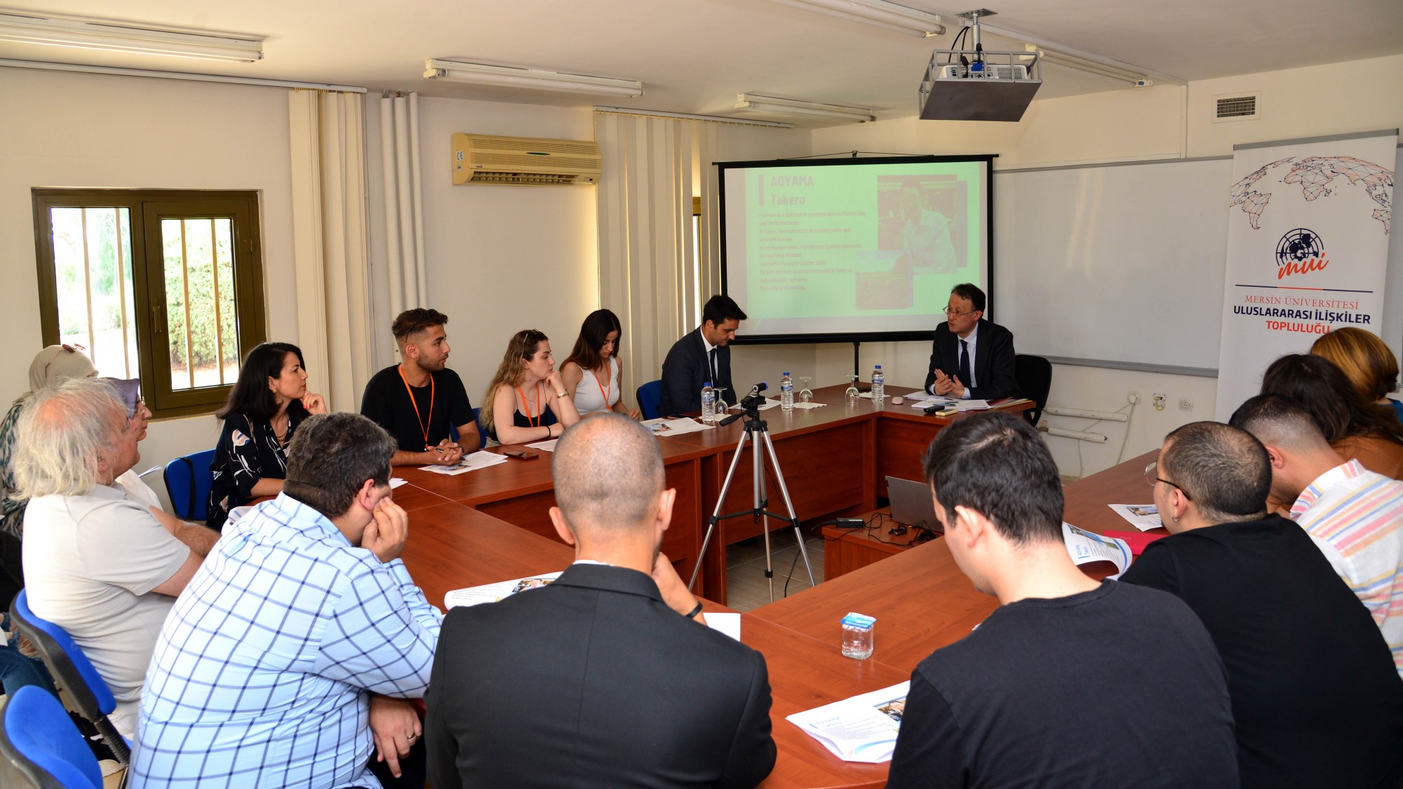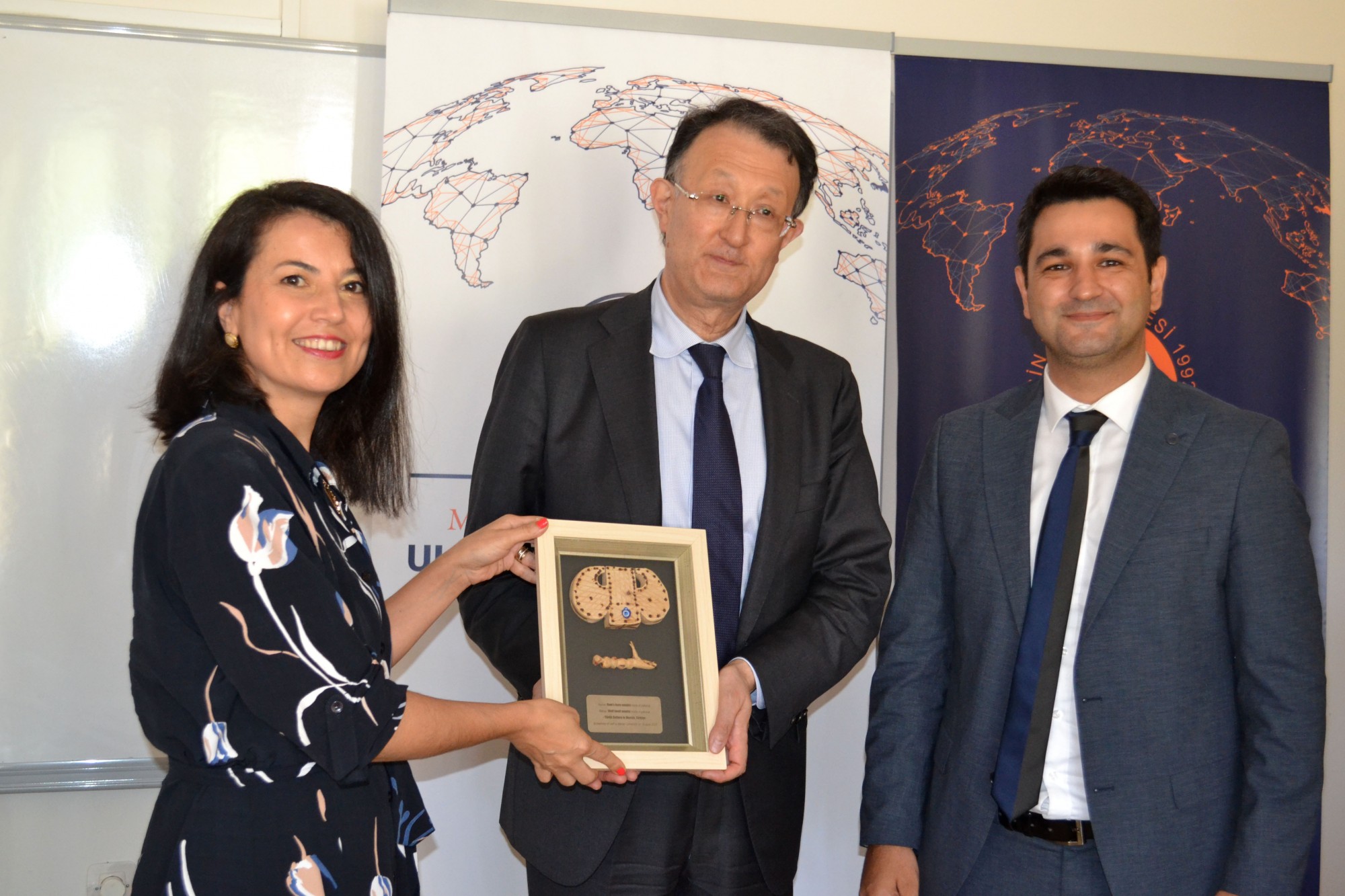 Etkinlik sonunda, Uluslararası İlişkiler Bölüm Başkanı Doç. Dr. Buğra Sarı, Takero Aoyama’ya teşekkür belgesi sundu. Ayrıca, Doç. Dr. Buğra Sarı ve Mersin Üniversitesi Yörük Kültürü Uygulama ve Araştırma Merkezi Müdürü Doç. Dr. İmran Gündüz Alptürker, Mersin hatırası olmak üzere yörük kültürüne ait el işçiliği amuletleri de Aoyama’ya hediye olarak takdim etti.