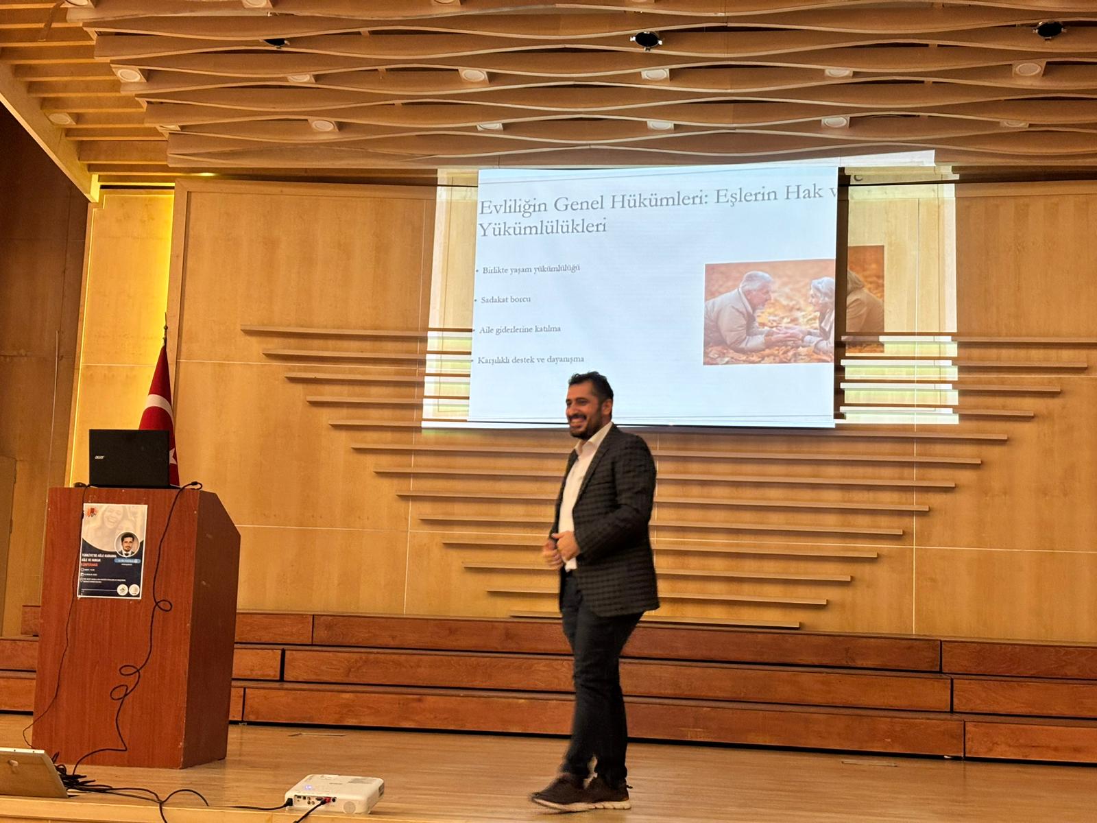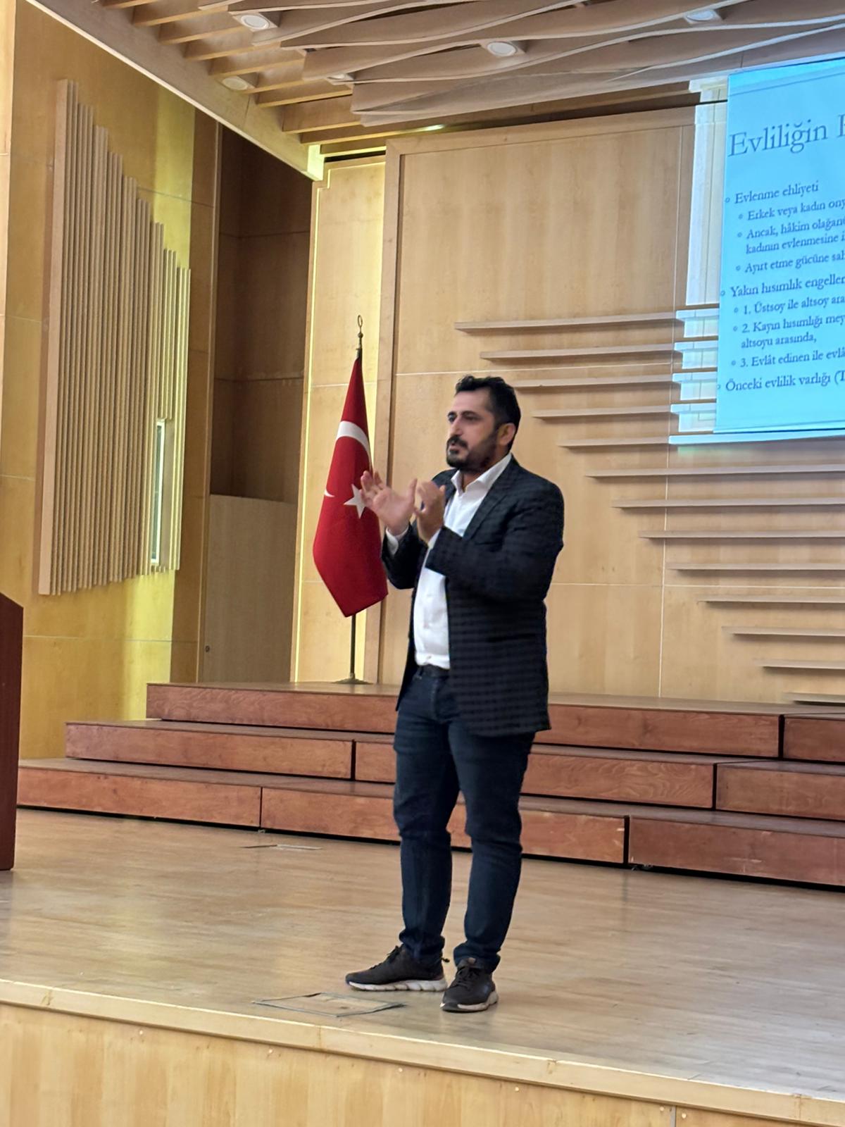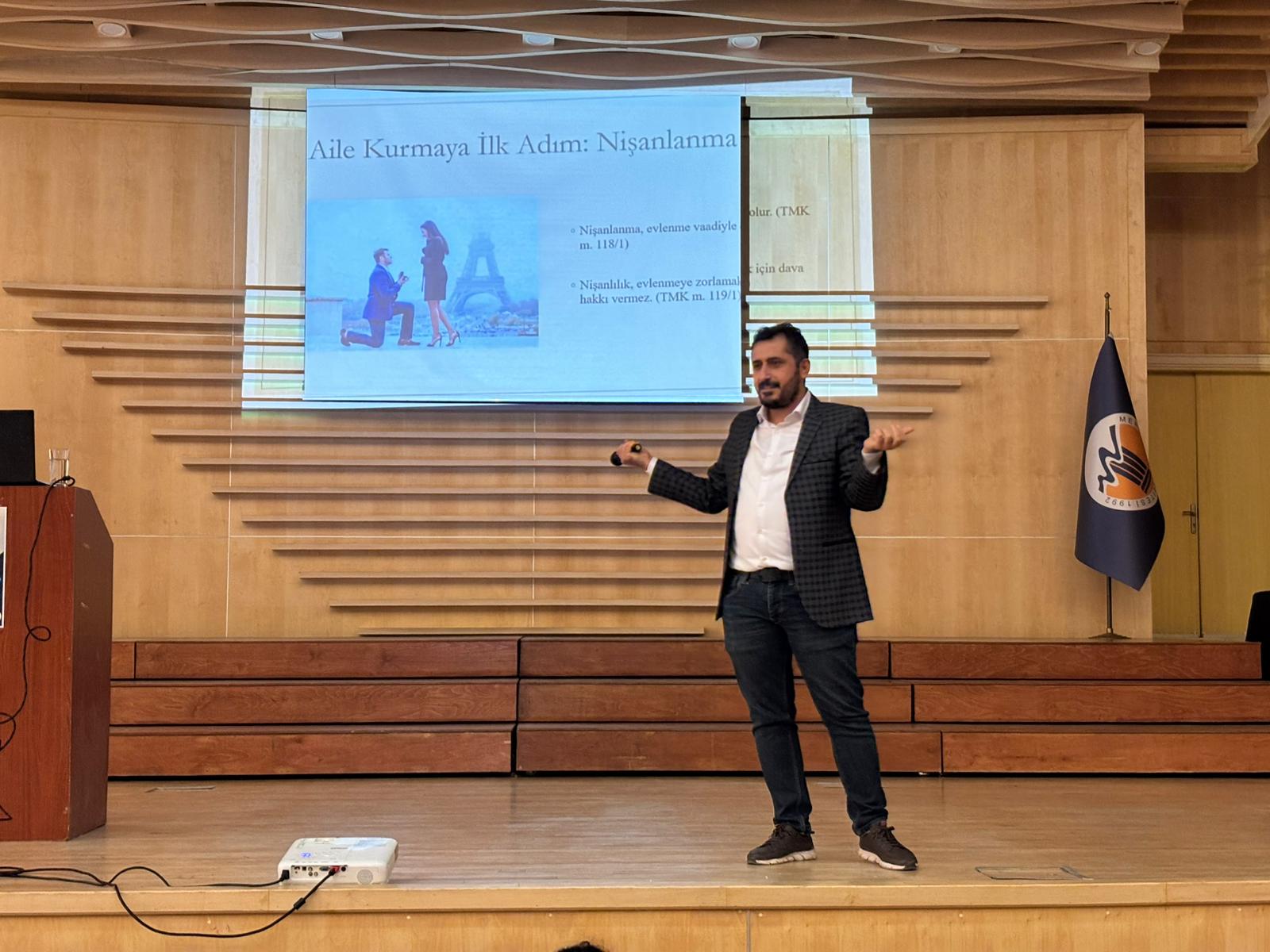 Konferansta, Dr. Öğr. Üyesi Bilal Özel tarafından aile kurumunun toplumsal yapımızdaki yeri, aile kavramının hukuki boyutu, çocuk hakları, nafaka ve velayet gibi temel aile hukuku konularına değinilerek sunum yapıldı. Katılımcılardan gelen sorular cevaplandı.