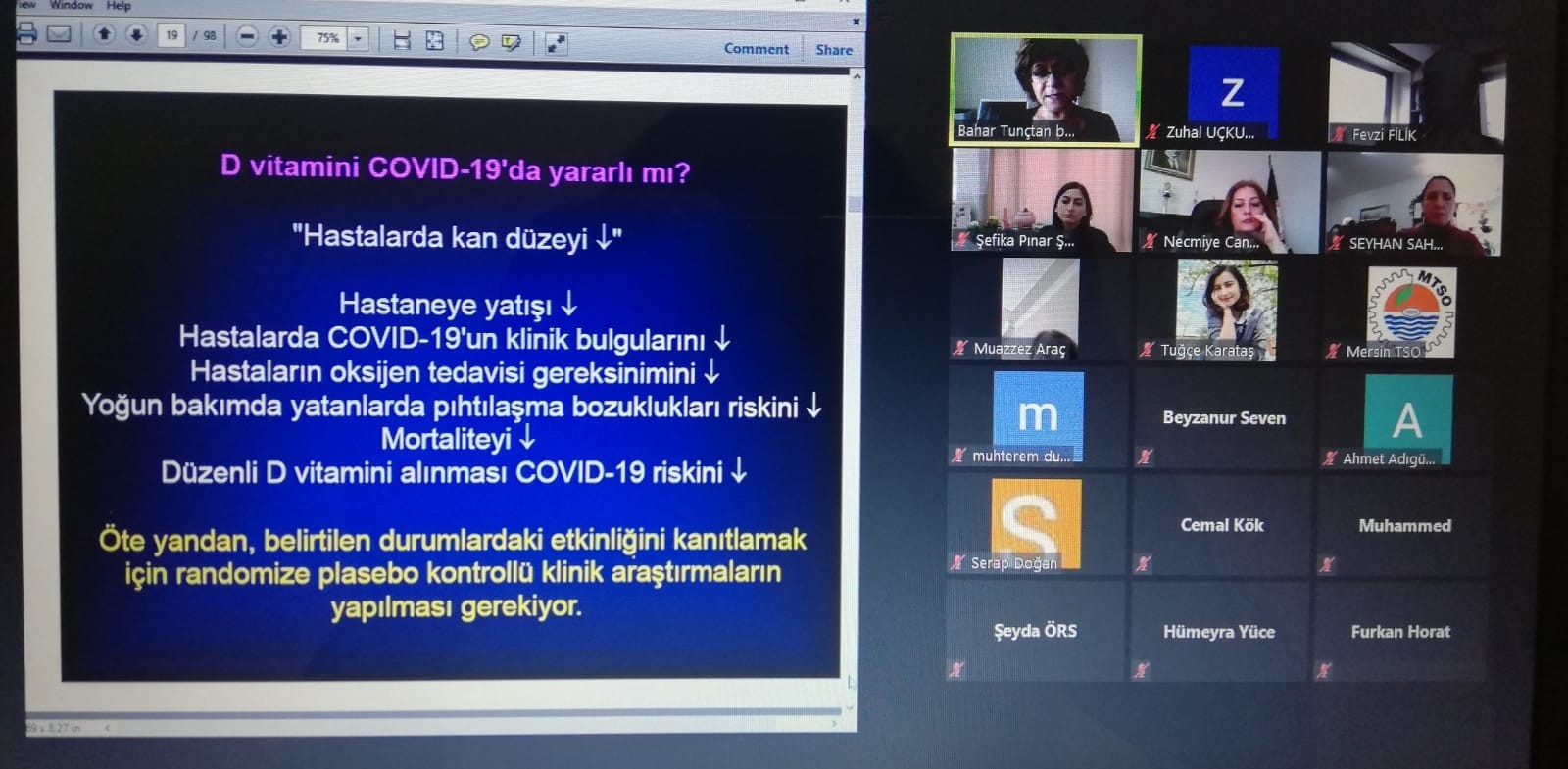 FAKÜLTEMİZ İLE MTSO İŞBİRLİĞİNDE DÜZENLENEN “MTSO İLE SAĞLIKLI GÜNLER” ETKİNLİĞİ PROF. DR. BAHAR TUNÇTAN’IN ONLINE SUNUMU İLE GERÇEKLEŞTİ.