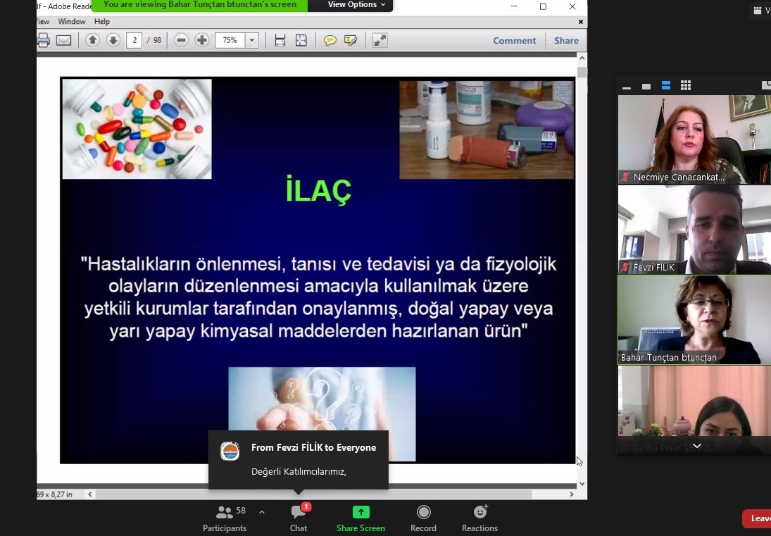 25 Şubat 2021 Perşembe günü 16:00’da COVID-19 tedbirleri kapsamında MTSO Projeler Müdürü Fevzi Filik’in moderatörlüğünde çevrimiçi olarak düzenlenen seminerde, Eczacılık Fakültemiz Farmakoloji Anabilim Dalı Öğretim Üyelerinden Prof. Dr. Bahar TUNÇTAN’ın "Vitaminlerin Akılcı Kullanımı” konulu sunumu gerçekleşti. Sunumda vitaminlerin kaynakları, fizyolojik rolleri ve işlevleri, eksiklik nedenleri, yetersiz veya fazla miktarda alındıklarında ortaya çıkan durumlar, gebeler ve emzirenler için alınması önerilen günlük miktarları, eksiklik durumlarında kullanıldıklarında ortaya çıkan yan etkiler, kullanılmaması ve dikkatle kullanılması gereken durumların yanı sıra, ilaçlar, besinler ve bitkisel ürünler ile etkileşimleri hakkında bilgiler verildi. Ayrıca, koronavirüse karşı olası koruyucu etkileri ve COVID-19 tedavisinde kullanımlarına ilişkin yapılan klinik araştırmalara değinildi. Son olarak, akılcı ilaç kullanımı açısından, vitaminlerin hastaların klinik gereksinimlerine uygun bir biçimde, uygun dozda, yeterli bir zaman süresinde hem kendileri hem de toplum için en düşük maliyet ile kullanılması konusunda yapılması gerekenler üzerinde duruldu.