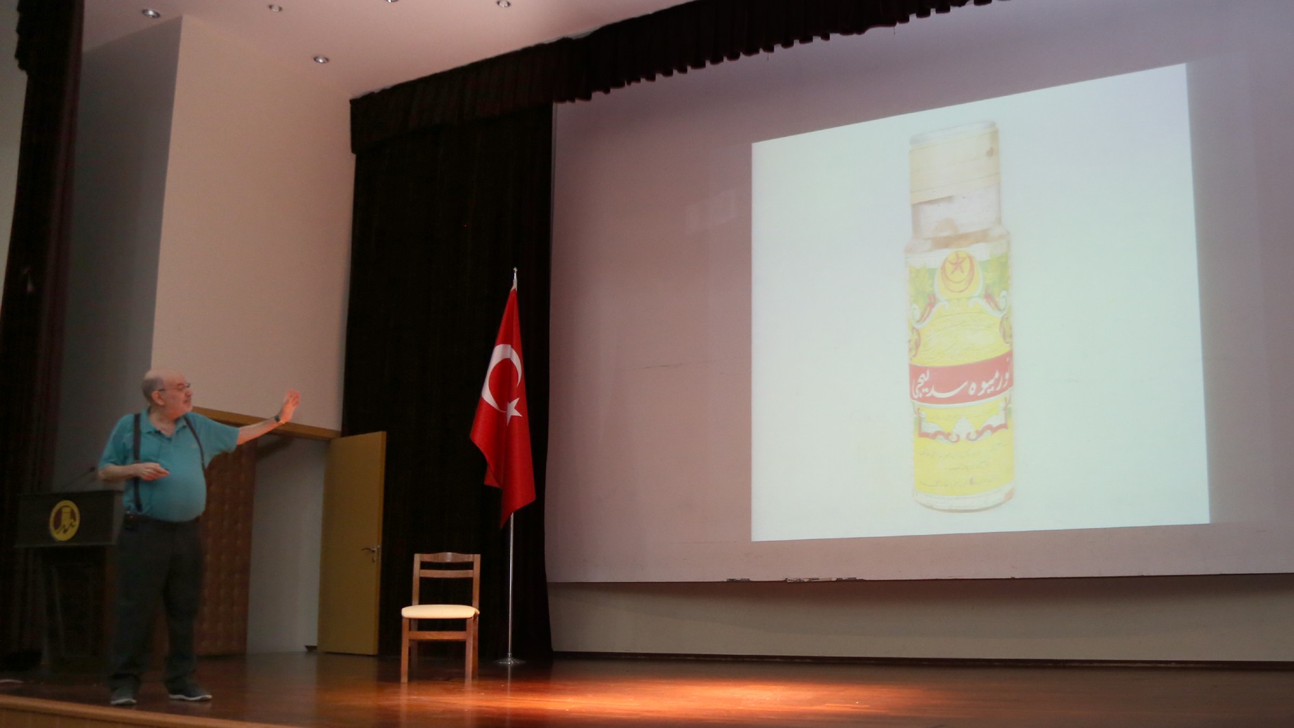 Konuşmasına koleksiyonunda yer alan eczacılık ile ilgili belgeleri detaylı bir şekilde anlatarak devam eden Mert Sandalcı, öğrencilerimize bu süreç içerisinde yaşadığı tecrübelerden ve yaptığı ziyaretlerdeki eczacılar ve onların yakınları ile gerçekleştirdiği sohbetlerden de bahsetti.