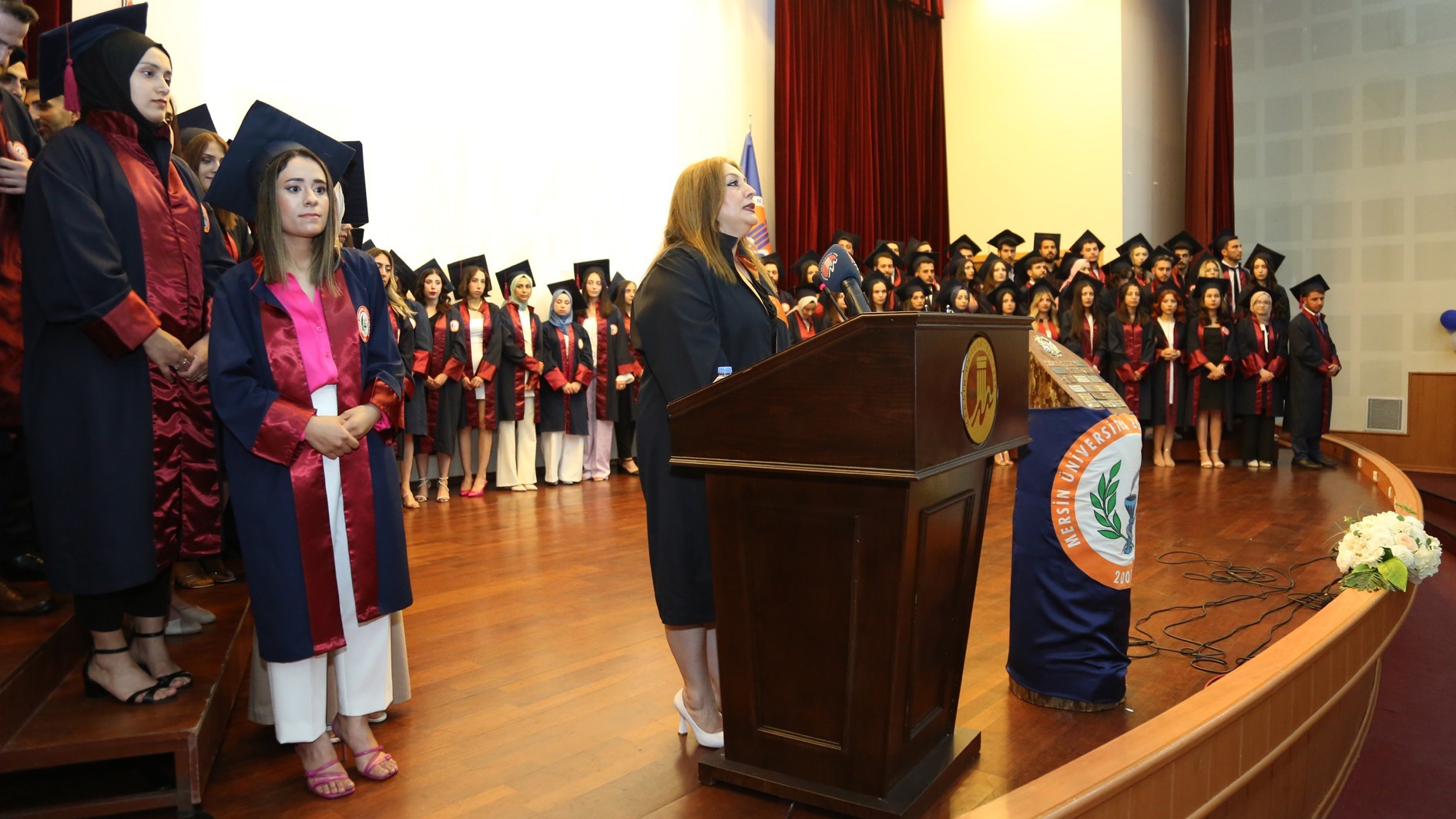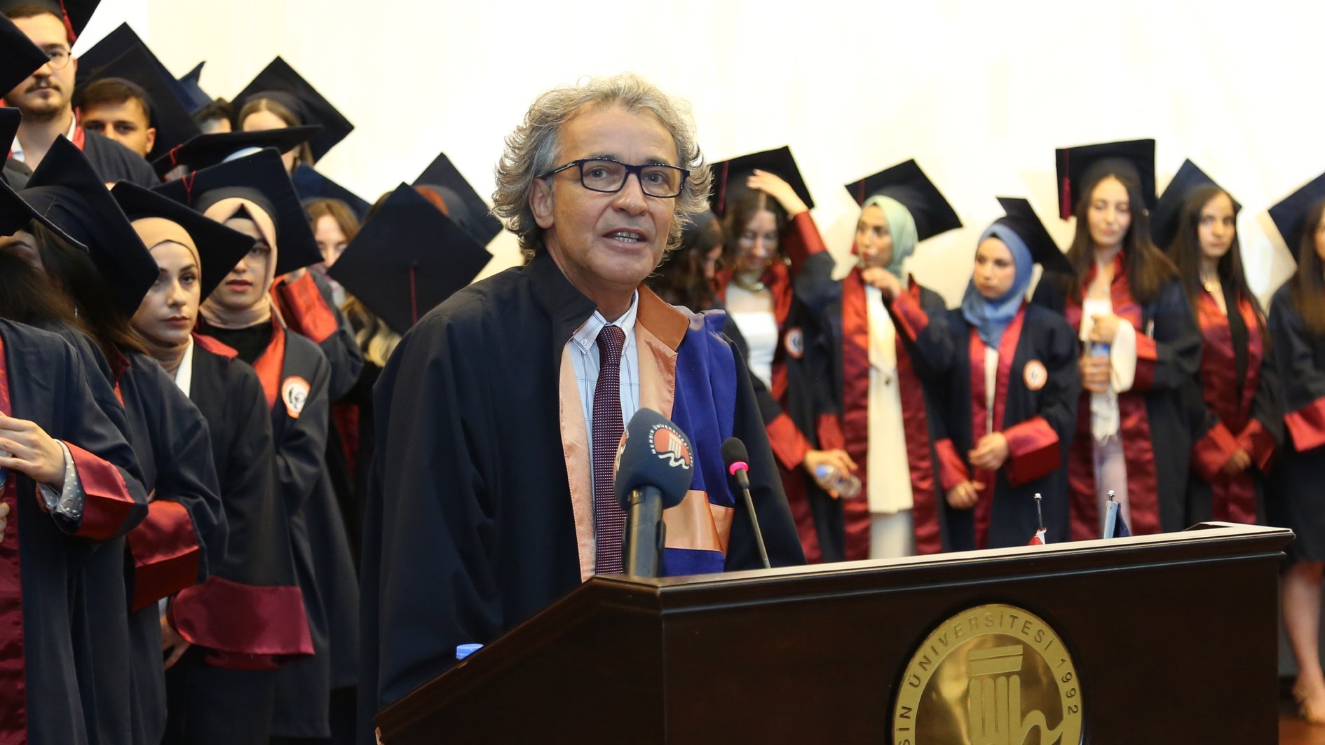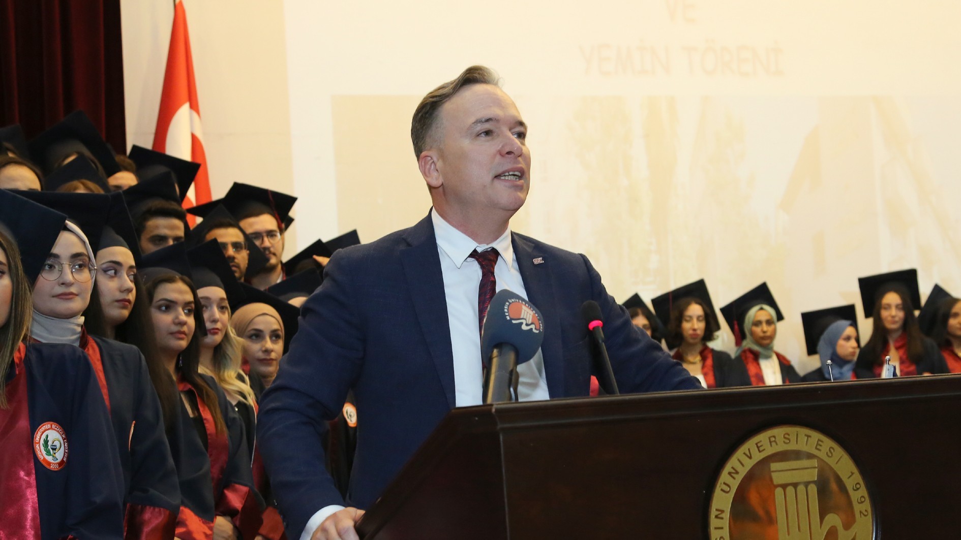 Mezunlarımıza seslenen Prof. Dr. ÖZTÜRK, “Sevgili mezunlarımız, girdiğiniz bu uzun yolu başarıyla yürüdünüz ve mezun oluyorsunuz. Bundan sonra da kendinizi mesleki anlamda sürekli geliştirmeniz ve yenilikleri takip etmeniz gerekmektedir. Pandemi ve depremin yarattığı olumsuz şartlar altında bazı dönemler eğitiminiz arzu edildiği gibi yürütülememiş olabilir. Bu yüzden kendinizi eksik hissettiğiniz alanlarda bu eksiklikleri kapatma fırsatları yaratmanızda fayda olacaktır. Mezunu olduğunuz üniversiteye aidiyet duygunuz hiçbir zaman azalmasın. Her biriniz çok önemli değerlersiniz. Ulu önder Gazi Mustafa Kemal Atatürk’ün çizdiği yolda, yani aklın ve bilimin yolunda ilerleyiniz.” ifadelerini kullandı.