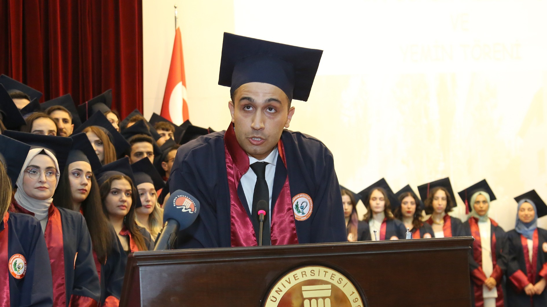 Beşinci sınıf temsilcisi Ecz. Hasan YAVUZ ise; “Bugün burada mezuniyet belgemizi alarak üniversitemizden resmen ayrılıyoruz. Bu belge, sadece bir kâğıt parçası değil. Bizim emeklerimizin, başarılarımızın bir kanıtı. Eczacılık Fakültesi’nde geçirdiğimiz yıllar boyunca, birçok zorluğa ve engellere rağmen mesleğimizi en iyi şekilde öğrenmek için çaba sarf ettik. Bugün de bu çabaların karşılığını alıyoruz.” şeklinde konuştu.