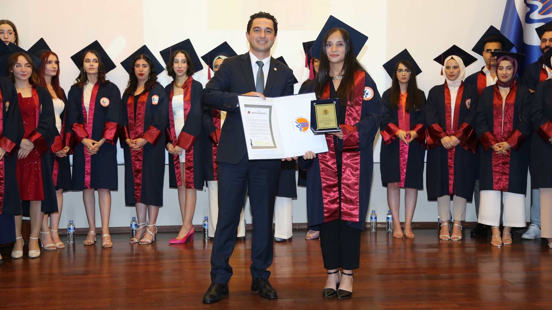 Konuşmaların ardından Fakülte birincisi Ecz. Seda Nur HORTOĞLU’na plaket ve belgesini Rektör Yardımcımız Prof. Dr. Ahmet Hakan ÖZTÜRK, Fakülte ikincisi Ecz. Beste TURUÇ’a Dekan Prof. Dr. Necmiye CANACANKATAN, Fakülte üçüncüsü Ecz. İlayda Yalçın’a ise 25. Bölge Ecza Kooperatifi Yönetim Kurulu Başkanı Uzm. Ecz. Özgün SAĞIR takdim etti.