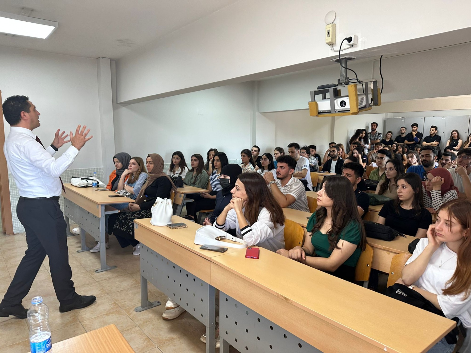 Fakültemiz, 25. Bölge Mersin Eczacı Odası ve Güney Ecza Kooperatifi ile birlikte yürütülen Staj Çekirdek Eğitim Programı kapsamındaki Staj I, Staj II ve Staj III derslerinden Staj I dersinin ilki 2 Ekim 2023 tarihinde 25. Bölge Mersin Eczacı Odası Başkanı Uzm. Ecz. Özgün SAĞIR tarafından gerçekleştirildi. Derse 25. Bölge Mersin Eczacı Odası Yönetim Kurulu Üyesi Ecz. Nevgül Kırıcı ve Fakültemiz 3. Sınıf öğrencileri katıldı.