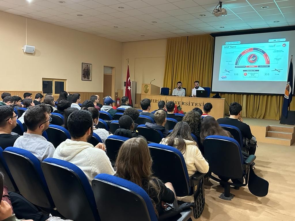 Fakültemiz öğrencilerine yönelik 12 Aralık 2023 tarihinde düzenlenen kariyer planlaması ve mesleki eğitimi pekiştirme amacıyla Dr. Öğr. Üyesi Alper Günöz'ün koordinatörlüğünde Türk Havacılık ve Uzay Sanayi A.Ş. Mühendis Geliştirme Programı Şef Mühendisi Dr. Görkem M. ŞİMŞEK, "Havacılık Endüstrisinde Mühendislerin Rolü ve Yeni Mezun Mühendislerin Prosese Dahil Olma Süreçleri" başlıklı bir seminerde konuşmacı olarak yer aldı. Seminerde, Dr. ŞİMŞEK, havacılık endüstrisinde mühendislerin önemini vurgulayarak, yeni mezun mühendislerin sektöre entegrasyon süreçleri üzerine değerli bilgiler paylaştı. Öğrenciler, mesleki gelişimleri için önemli ipuçları ve kariyer planlaması konusunda değerli deneyimler edindiler. Seminer, katılımcılar arasında etkileşimli bir soru-cevap oturumuyla sona erdi.