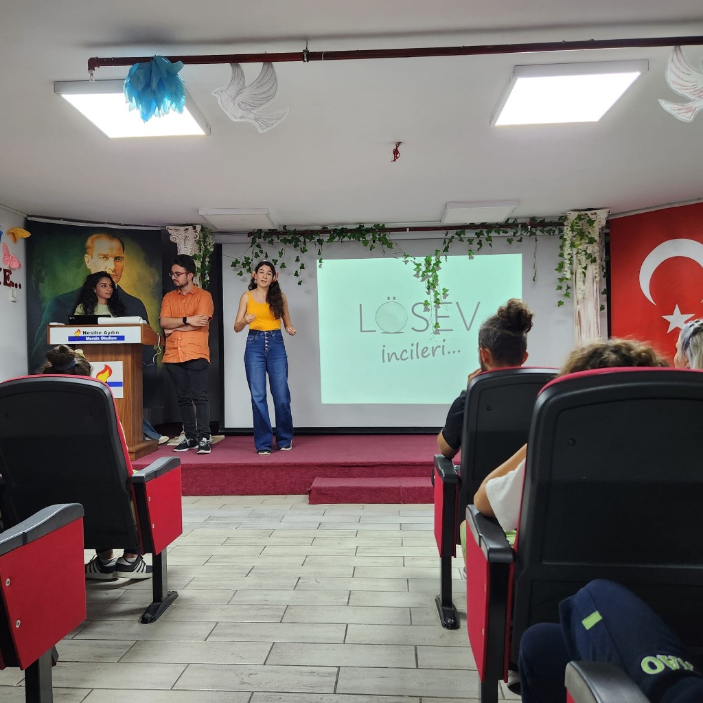 Fakültemiz öğrencileri tarafından kurulan Mersin Üniversitesi LÖSEV Fayda Topluluğu, 2-8 Kasım Lösemili Çocuklar Haftası kapsamında 2 Kasım 2023 tarihinde yürütülen “LÖSEV'in İncileri Projesi” ile Nesibe Aydın Ortaokulu öğrencilerine sağlık bilinci, Lösemi ve LÖSEV gönüllüsü olma konusunda sosyal sorumluluk bilinci oluşturmak amacı ile seminer düzenledi.