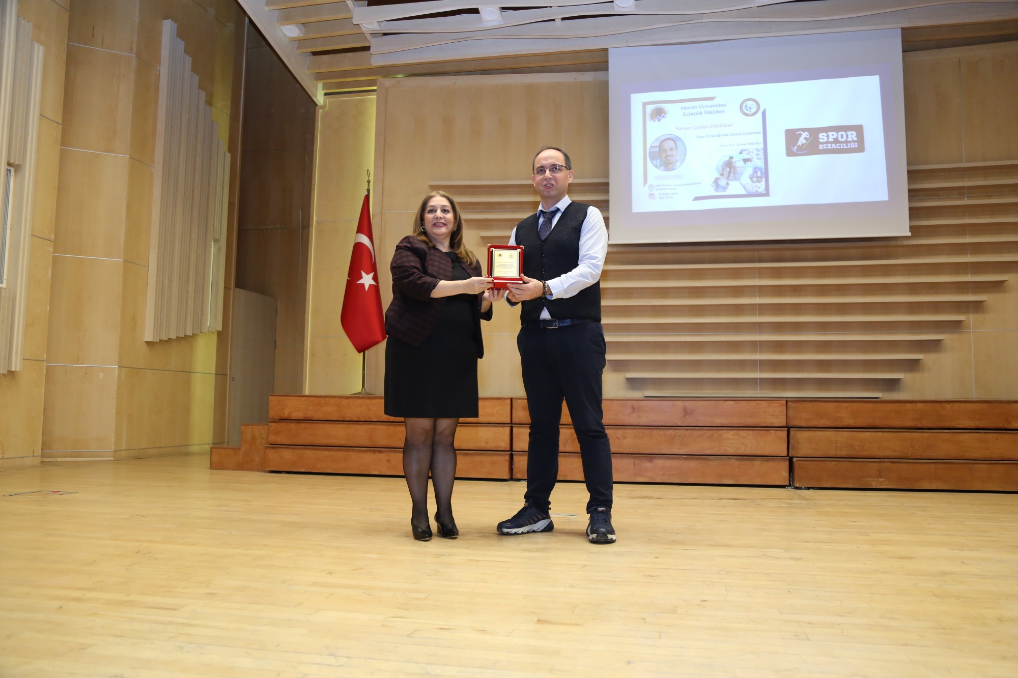 FAKÜLTEMİZ KARİYER GÜNLERİ ETKİNLİKLERİ KAPSAMINDA UZM. ECZ. SOMER HELVACI’NIN KONUŞMACI OLARAK KATILDIĞI “SPOR ECZACILIĞINDA GÜNCEL GELİŞMELER” BAŞLIKLI KONFERANS DÜZENLENDİ.