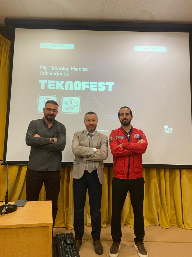 27 Şubat 2024 Salı günü Fakültemiz Konferans Salonunda T3 Vakfı (Türkiye Teknoloji Takımı Vakfı) Mersin İl Sorumlusu Ahmet Bozdoğan'ı ağırladık. Bu yıl Adana'da gerçekleştirilecek olan TEKNOFEST yarışmalarıyla ilgili öğrencilerimize yönelik bilgilendirme toplantısı gerçekleştirildi. Toplantıya Fakültemiz Dekanı Prof. Dr. Emre AKIN, Dekan Yardımcımız Dr. Öğr. Üyesi Umut ÖNEN, öğretim üyelerimiz ve öğrencilerimiz yoğun katılım sağladılar.
