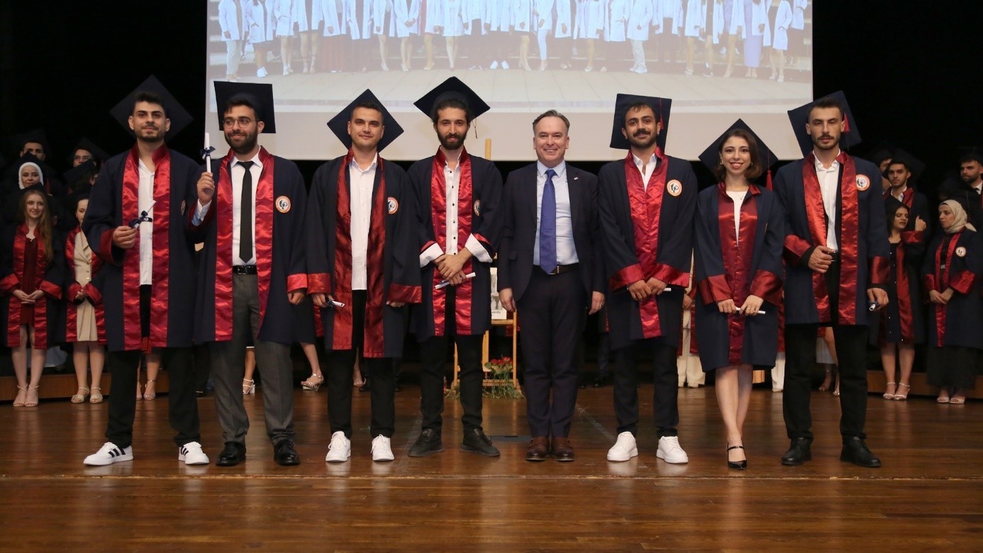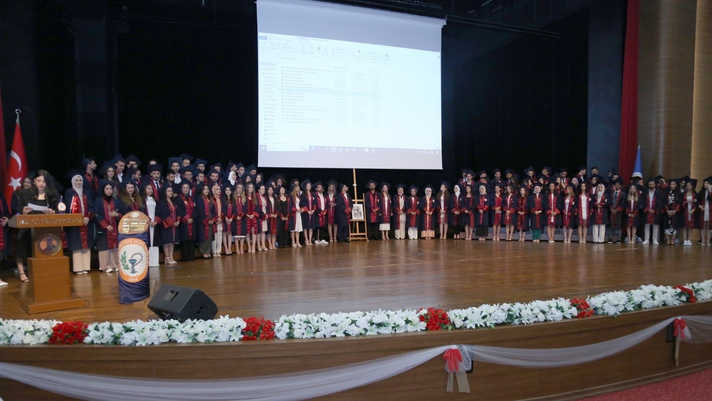 Konuşmasını mezunlarımıza seslenerek sonlandıran Prof. Dr. Ahmet Hakan ÖZTÜRK, “Her zaman, bugünkü gibi yüzünüzdeki gülümsemeyi eksiltmeyin. Her zaman hastalarınıza güler yüzlü şekilde sempati ve empatiyle yaklaşın, sağlıklı bir iletişim kurun. Hastanın tedavisine sevgiyle ve saygıyla başlanıyor. Yüzünüzdeki gülümseme ve içinizdeki insan sevgisi hiçbir zaman eksik olmasın. Hepinizin yolu ve bahtı açık olsun.” şeklinde konuştu.