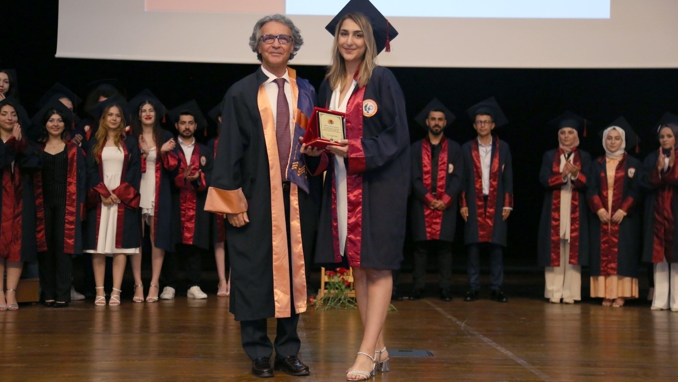 Konuşmaların ardından dönem birincisi Burçin DÜŞKÜN’e mezuniyet belgesi ve plaketi, Rektör Yardımcımız Prof. Dr. Ahmet Hakan ÖZTÜRK, tarafından takdim edildi.