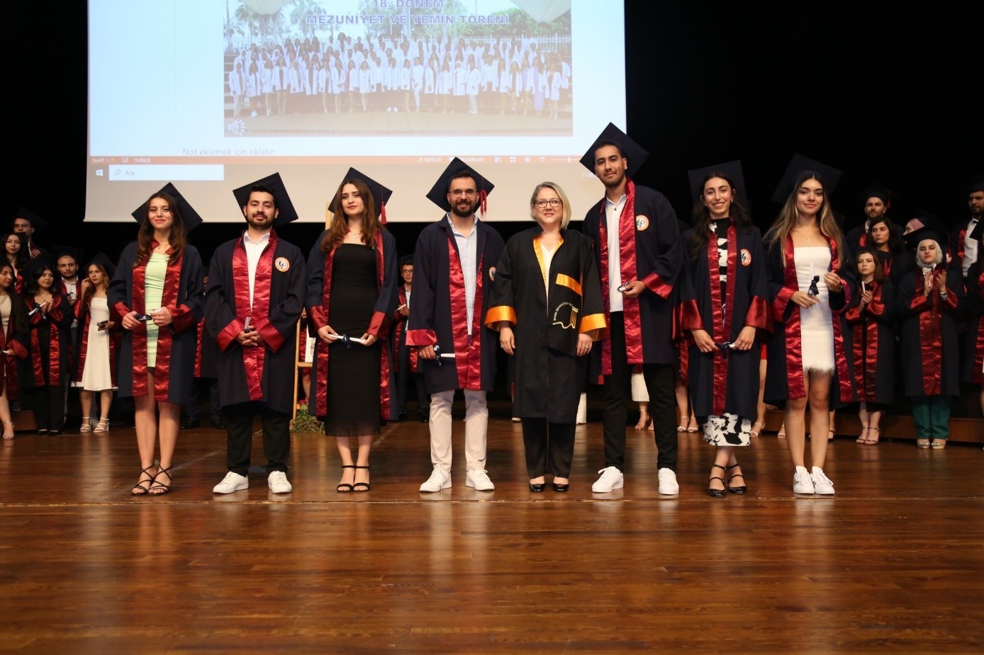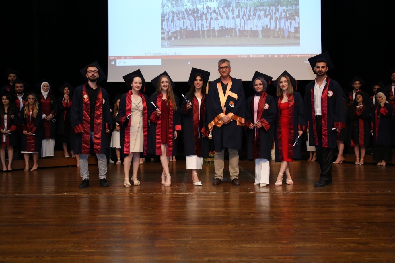 Saygı duruşu ve İstiklâl Marşı’nın okunmasıyla başlayan tören; Fakültemizin Müzik Topluluğu’ndan Arş. Gör. Ercan ADAR ile Fakültemiz öğrencilerimizden Baran ATLI, Asya OKTAY ve Zelal ÇİÇEK’in gerçekleştirdiği müzik dinletisi ile devam etti. Ardından mezun öğrencilerimizin beş yıl boyunca yaşadıklarını aktaran video gösterimi sonrasında mezunlarımız coşkuyla salona davet edildi.