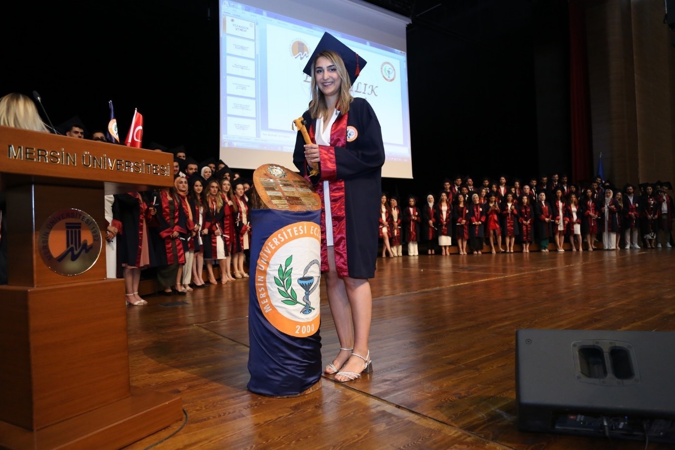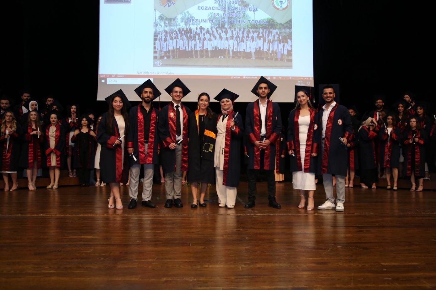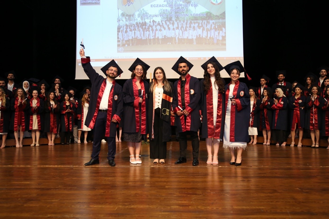 Daha sonrasında dereceye giren ve mezun olan diğer öğrencilerimize temsili diplomaları, Dekanımız Prof. Dr. CANACANKATAN, Diş Hekimliği Fakültesi Dekanımız Prof. Dr. Fethi ATIL, 25. Bölge Mersin Eczacı Odası Genel Sekreteri Ecz. Oktay ASLAN, Güney Ecza Kooperatifi Yönetim Kurulu Başkanı Ecz. Tarkan BİR ve Üniversitemiz Eczacılık Fakültesi öğretim elemanları tarafından takdim edildi. Ardından 18. dönem mezunları adına yaş kütüğe dönem plakası, fakülte birincisi Ecz. Burçin DÜŞKÜN tarafından çakıldı.