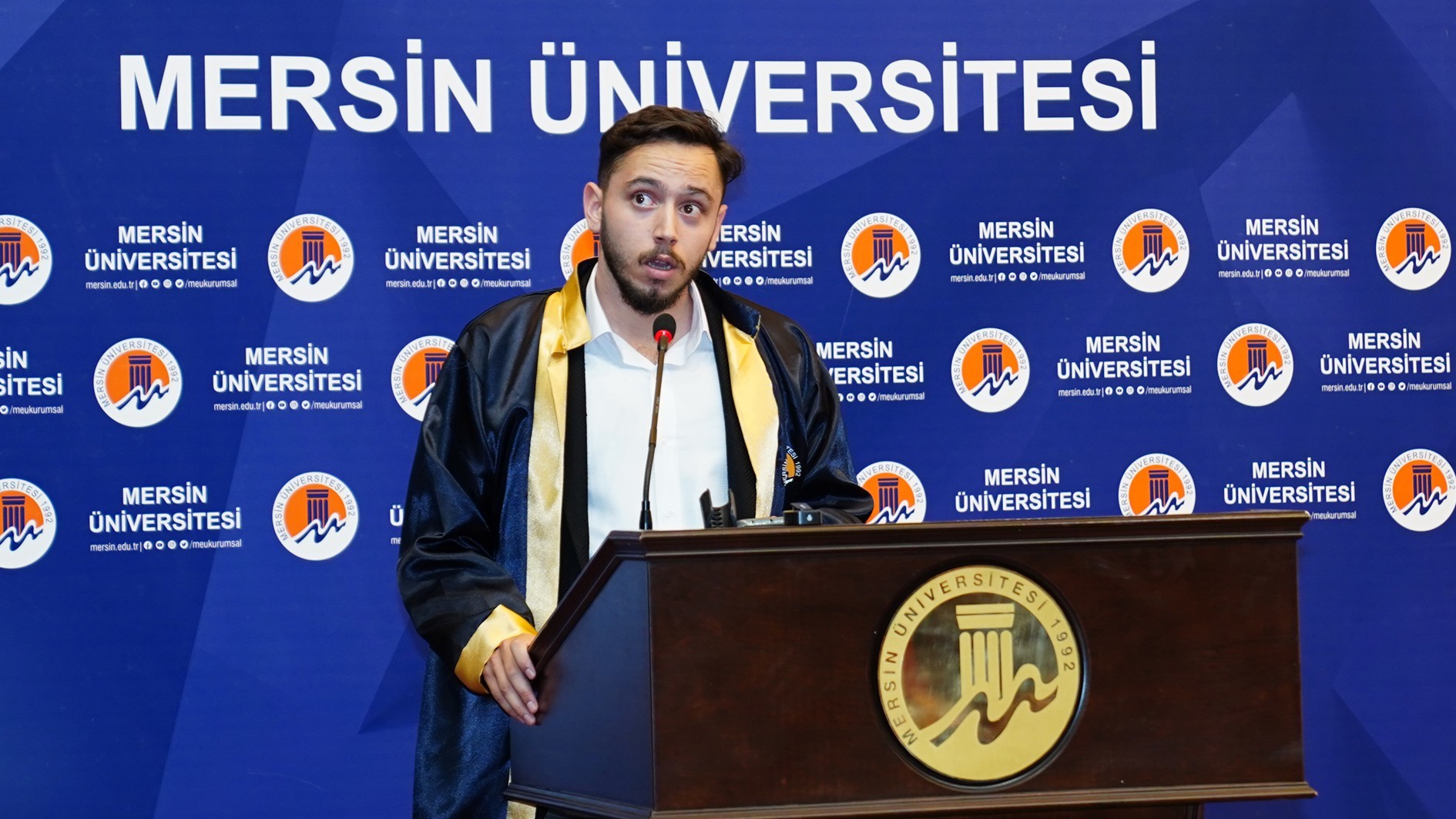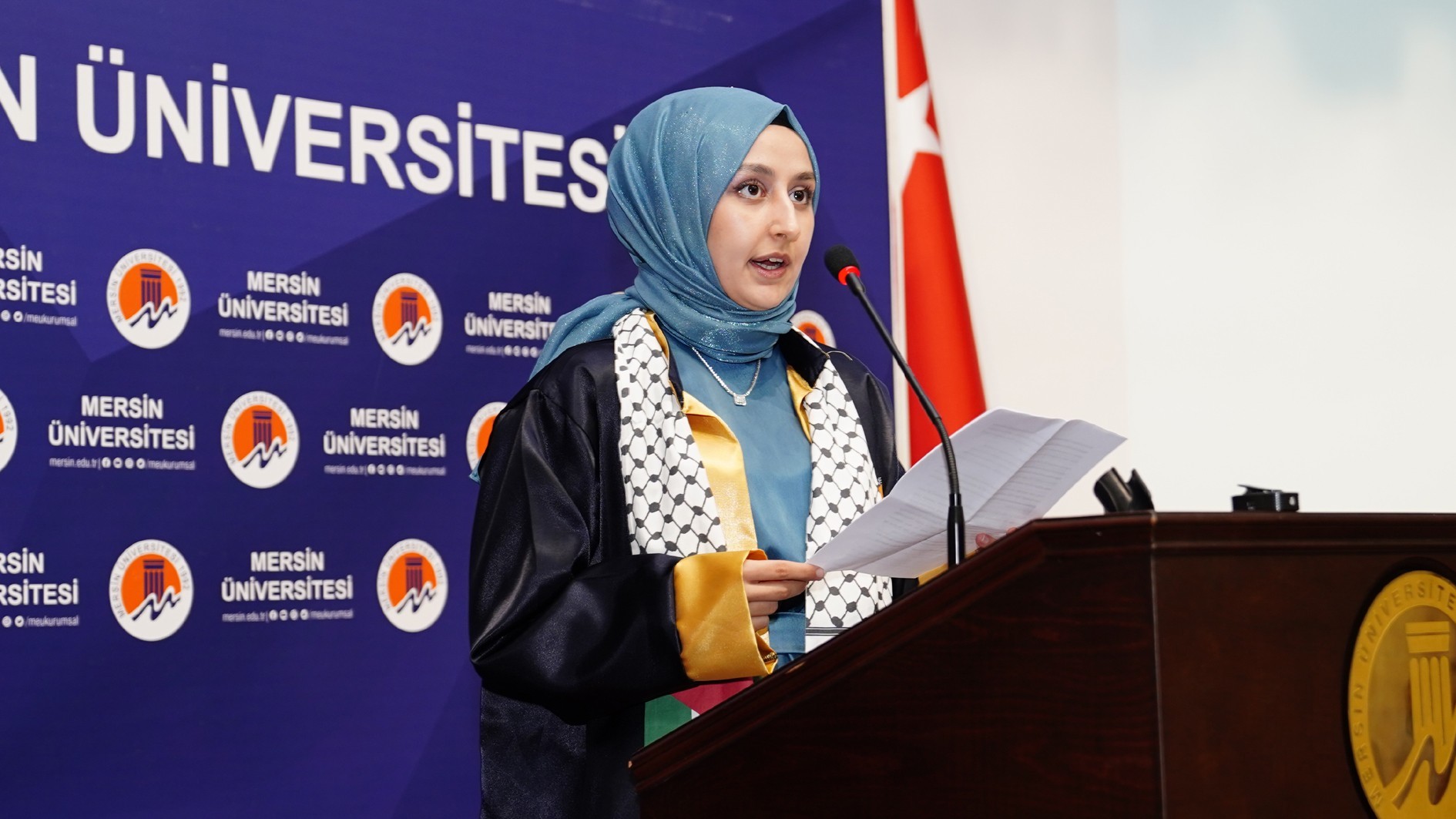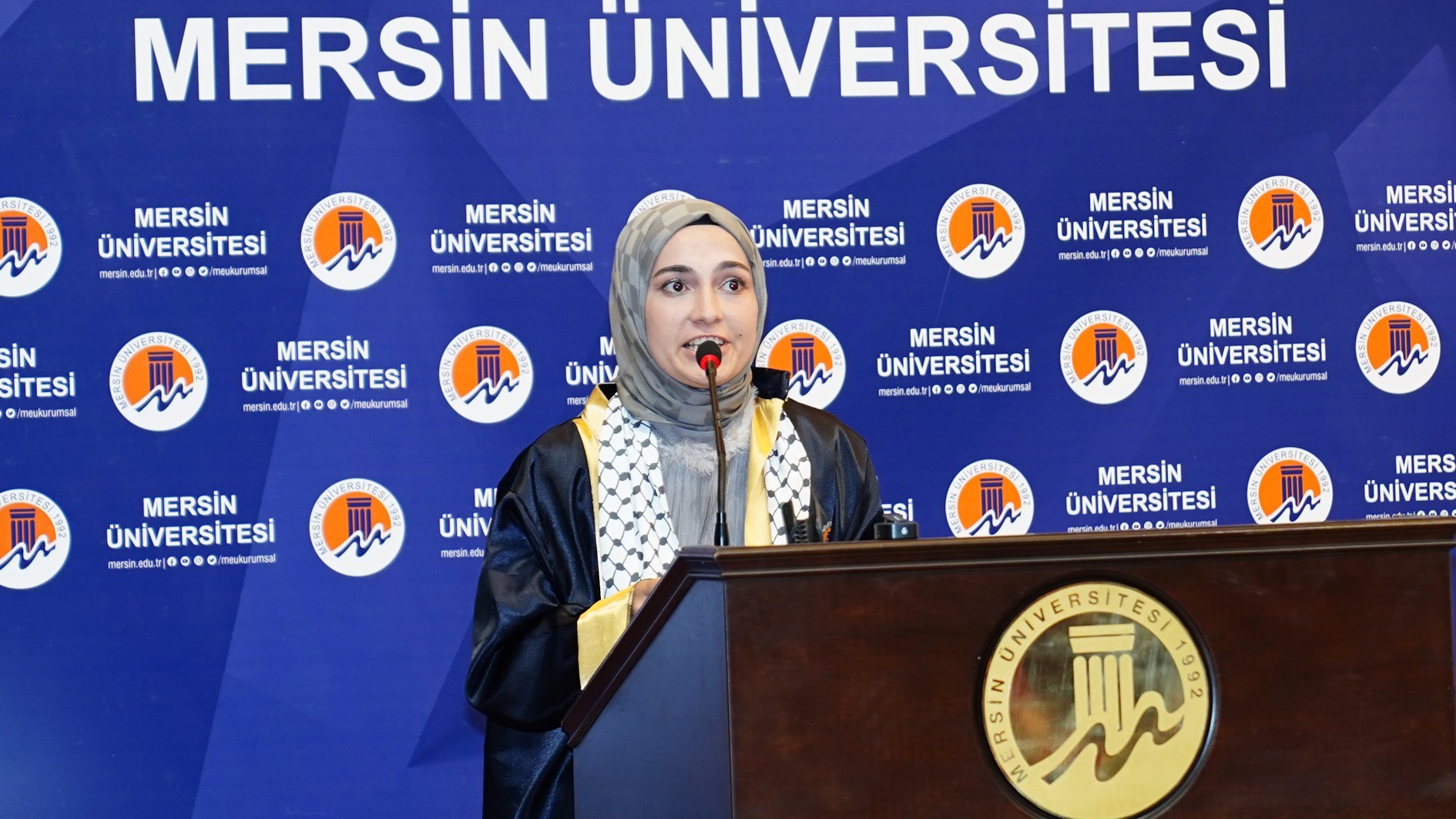 Kendisinin Üniversitemiz İlahiyat Fakültesi'nin ilk dersini vermesi için plânlamanın yapıldığını fakat o dönemki yoğunluğundan Fakültemizin son dersini vermesinin nasip olduğunu ifade ederek sözlerine başlayan 17. Diyanet İşleri Başkanımız Prof. Dr. Mehmet Görmez, "Buradaki varlığınız bir duadır. Bugün Mersin Üniversitesi İlahiyat Fakültesi mezun öğrencilerinin mezuniyet töreninde bulunuyoruz. Bu mezuniyet töreni aynı zamanda büyük bir duadır. Bu duayı 1 yıldır okullarından mahrum bırakılan, okulları bombalanan ama sokaktan bütün dünyaya öğretmenlik yapan Gazze'deki bütün öğrencilere ithaf ediyoruz. Cenab-ı Hak kabul eylesin." dedi.