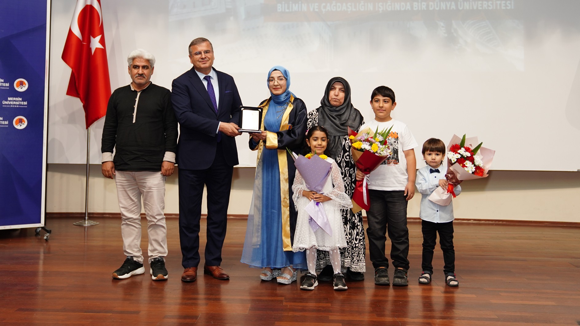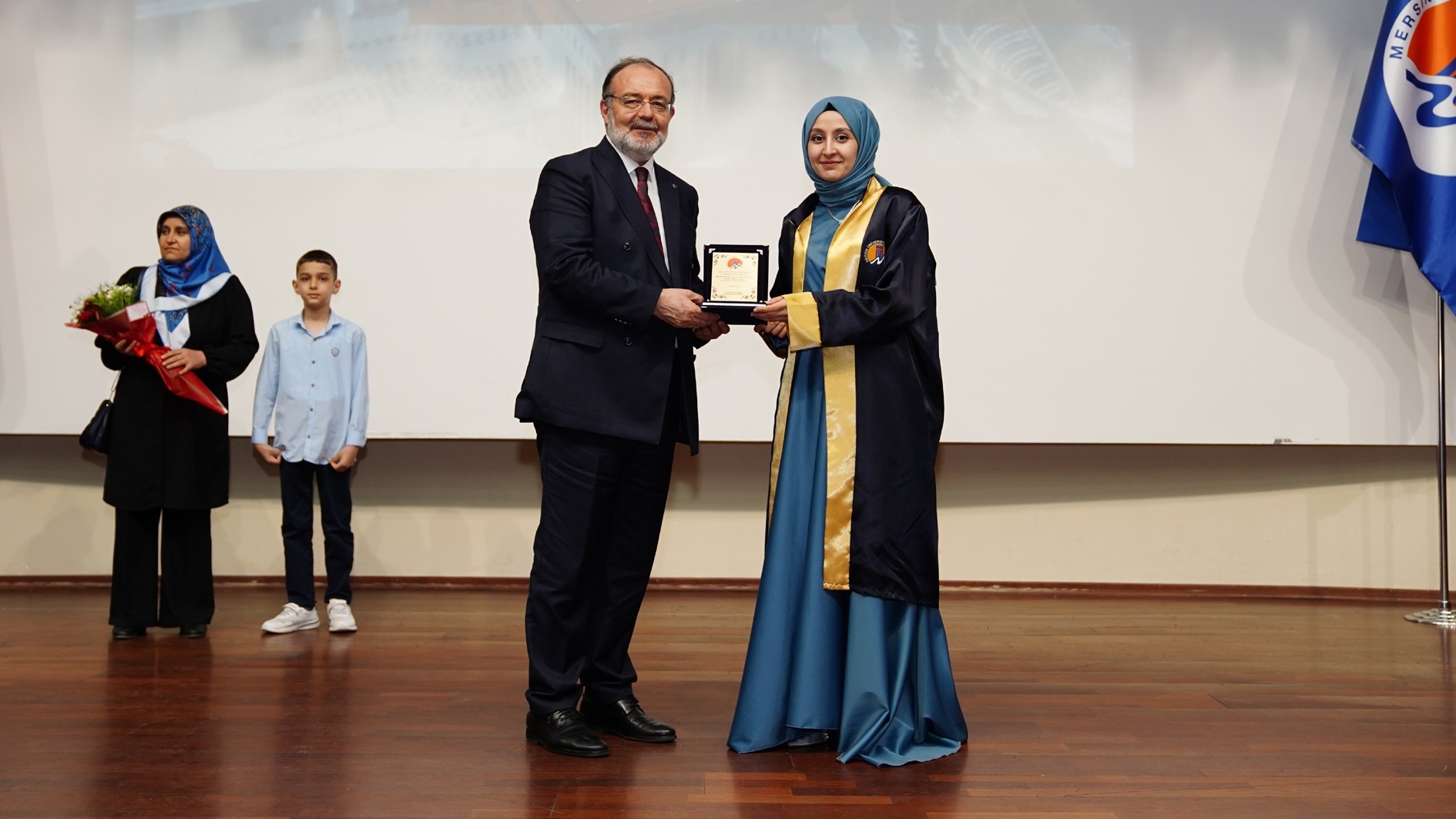 Sanatçı Bayram Bilge Tokel'in sazıyla gerçekleştirdiği müzik dinletisinin ardından dereceye giren mezunlarımıza temsili diplomaları, plâketleri ve ödülleri takdim edildi. Fakülte birincisi Hayrunnisa Can’a temsili diploması, plâketi ve ödülü 17. Diyanet İşleri Başkanımız Prof. Dr. Mehmet Görmez tarafından verildi. Fakülte ikincisi Güldenur Gültekin'e temsili diploma, plâket ve ödülü Mersin Adalet Komisyonu Başkanı Mustafa Kahveci'nin takdim etmesinin ardından Fakülte üçüncüsü Zeliha Türüt'e temsili diploması, plâketi ve ödülü Rektör Danışmanımız ve İlahiyat Fakültemizin Dekanı Prof. Dr. Erdal Baykan tarafından verildi.