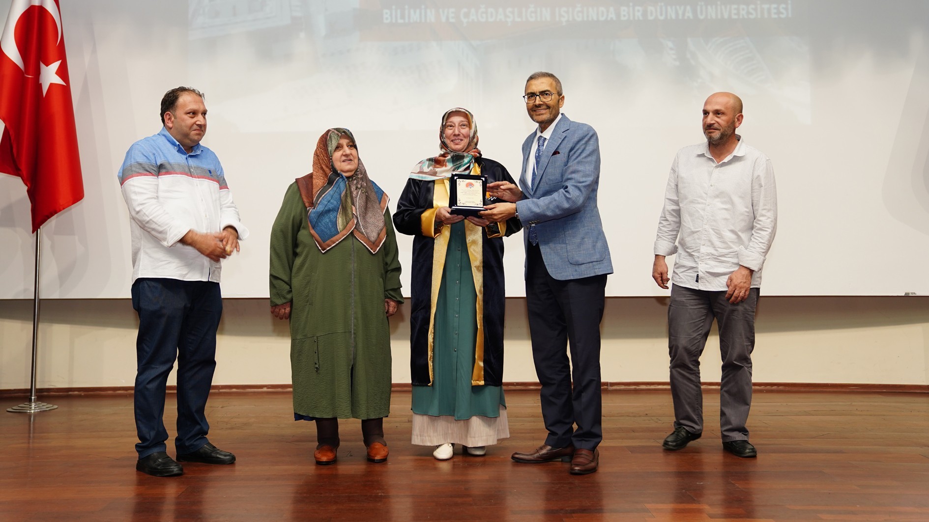 Mezunlarımız adına konuşan İlahiyat Fakültemizin birincisi Hayrunnisa Can, "Hepimiz farklı farklı hikâyelerden oluşuyoruz. Beni buraya getiren hikâyeden bahsetmek istiyorum" diyerek başladığı konuşmasında oldukça duygulu anlar yaşandı. Hayrunnisa Can, konuşmasını ailesine ve öğretim elemanlarımıza teşekkür ederek noktaladı.