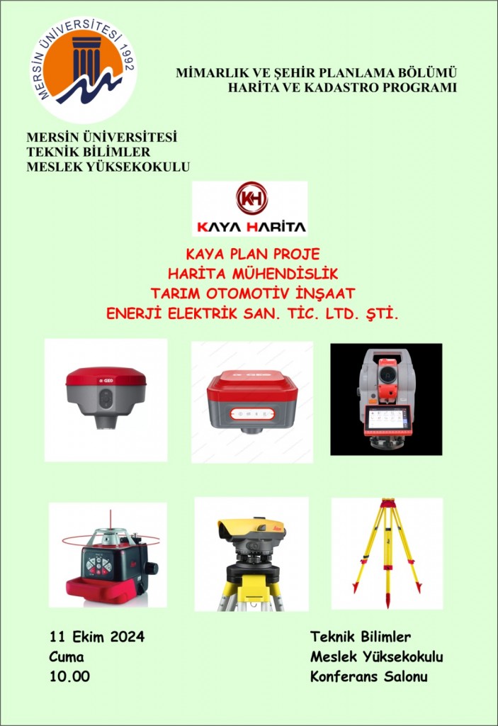 Harita ve Kadastro Programı öğrencilerine Kaya Plan Proje Harita Mühendislik Tarım Oto. İnş. Elk. Tic. Ltd. Şti. 11.10.2024 saat 10.00'da Yüksekokulumuz Konferans Salonunda GPS cihazının tanıtımını gerçekleştirmiştir. Sonrasında tanıttıkları GPS cihazını öğrencilerimizin eğitimine katkı sağlamak için Yüksekokulumuza hibe etmişlerdir.