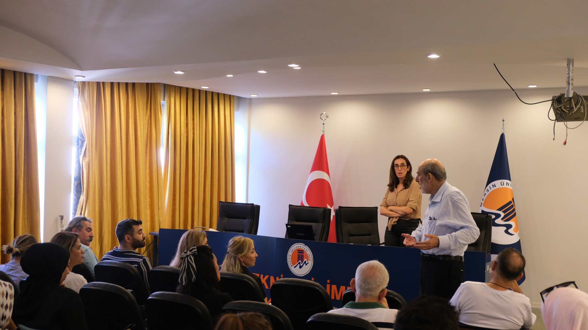 Yüksekokulumuz Mobilya ve Dekorasyon Programında verilen Mesleki Uygulama dersi kapsamında öğrencilerimize 17.10.2024 tarihinde ISIN PRES Yapı ve Mobilya Malzemeleri Firma sahibi Nejat Isınlık, İç Mimar Beyza Isınlık ve Genel Müdür Sezen Isınlık tarafından verilen bir seminer düzenlenmiştir. Seminerde konuşmacı Sezen Isınlık, öğrencilerimizle kendi eğitim süreci, iş deneyimleri, sektörün güncel durumu, iş olanakları ve bunlar için nelerin yapılmasının gerekli olduğu konularında bilgilerini paylaşmıştır. Seminer sonunda firma katılımcılarına yüksekokulumuz tarafından katkıları için teşekkür belgeleri takdim edilmiştir.