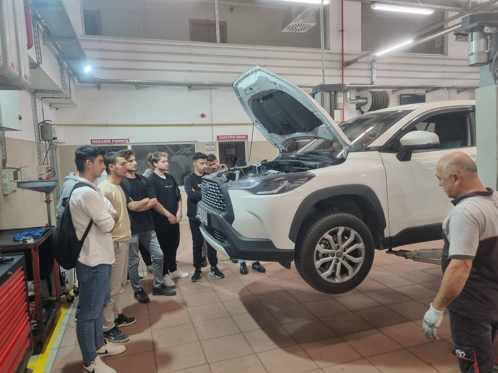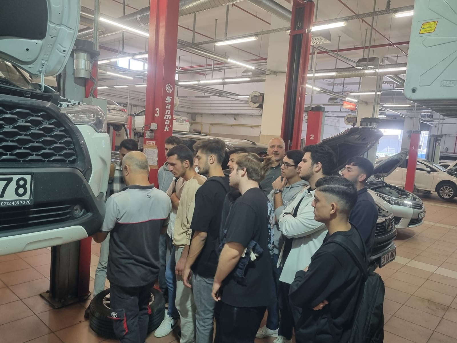 Toyota Plaza Boranlar yetkili servisinde tecrübeli ustalarından sayın Hakan ÖZ öğrencilerimize otomobillerin yıllık bakımlarında yapılan işlemler ve bakım uygulamaları konusu ile fren balataları kontrolleri ve fren balataları değiştirme uygulaması konularında uygulamalı eğitim vermiştir.