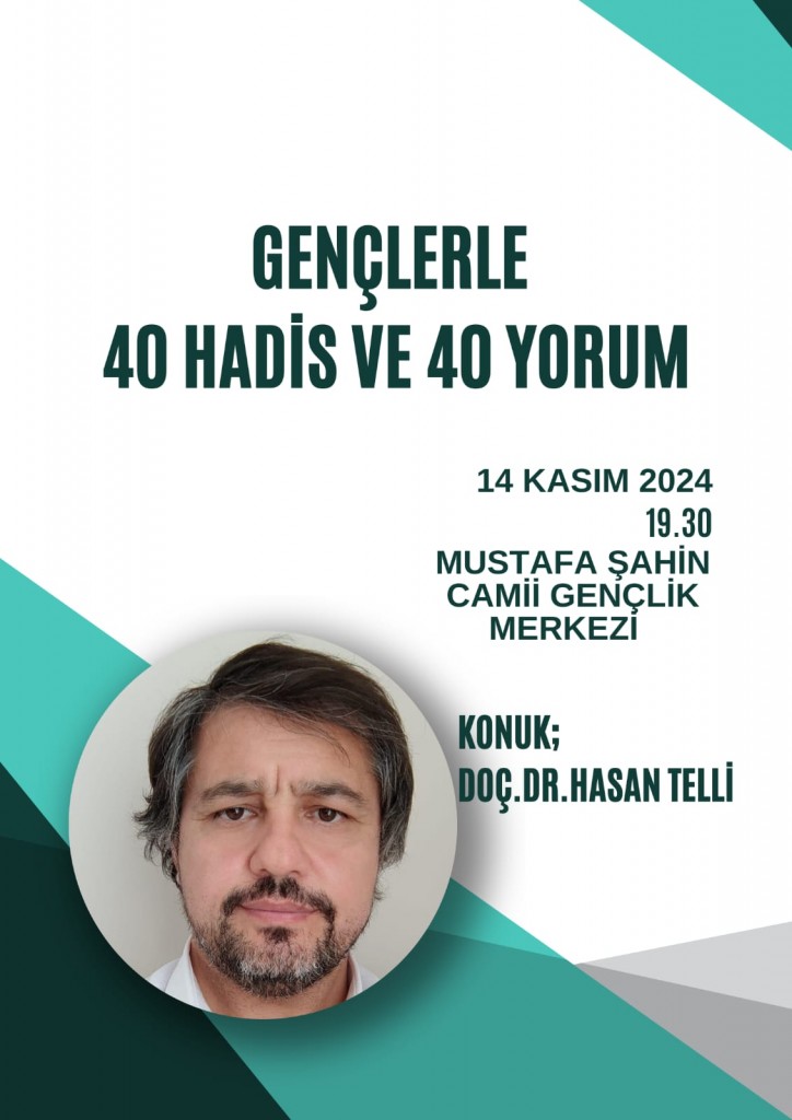 Fakültemiz Dekan Yardımcısı Doç. Dr. Hasan Telli, Mezitli Müftülüğü Mustafa Şahin Camii Gençlik Merkezinin düzenlediği "Gençlerle 40 Hadis ve 40 Yorum" adlı programda gençlerle bir araya geldi.