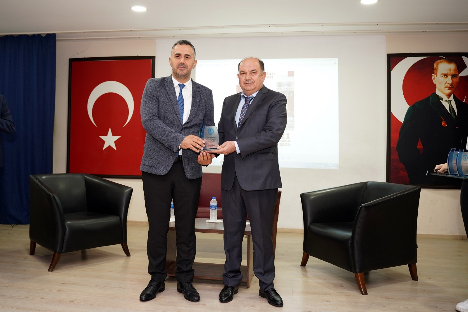 Sunumların ardından Hacı Sabancı Anadolu Lisesi Müdürü Musa Malkoç tarafından Rektörümüz Prof. Dr. Erol Yaşar, Teknik Bilimler MYO Müdürümüz Doç. Dr. Sertaç Göktaş ve Öğr. Gör. Burak Şahin’e plaket takdim edildi.