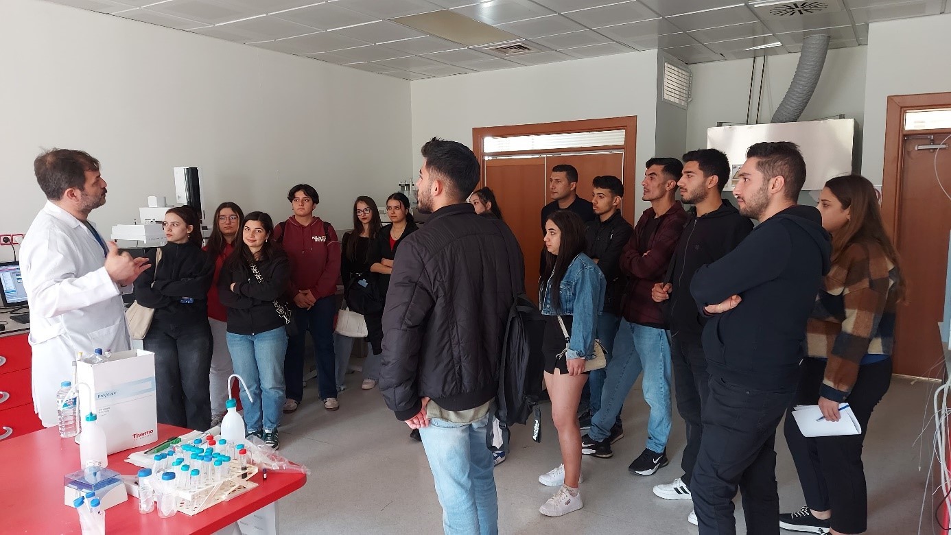 Teknik Bilimler Meslek Yüksekokulu Gıda İşleme Bölümü öğretim elemanları ile bölüm 1. sınıf öğrencileri, Mersin Üniversitesi İleri Teknoloji Eğitim Araştırma ve Uygulama Merkezine (MEİTAM) ziyarette bulundu. Laboratuvarlar kapsamında ileri teknoloji analiz cihazları tanıtıldı. Öğr. Gör. Dr. Cihan GEÇGEL tarafından, ileri teknolojilerin gıda analizlerinde kullanımını cihazlar üzerinde detaylı biçimde anlatıldı. Gıda sektöründeki birçok farklı ürünün (et ve ürünleri, süt ve ürünleri, bakliyat, tahıl, içecek, meyve ve sebze, bal, şeker ve diğer özel gıdalar) analizleri ve bu analizlerin sektör için önemi de bölüm hocaları tarafından öğrencilere aktarıldı. Tüm bölüm hocalarının destek ve katkıları ile Dr. Ögr. Üyesi Fatma Söylemez, Ögr. Gör. Dr. Günseli Bobuş Alkaya, Öğr. Gör. Dr. Mustafa Kadir Esen ve Öğr. Gör. Merve Çarıkçıoğlu'nun katılımları ile bu teknik geziler gerçekleştirildi.