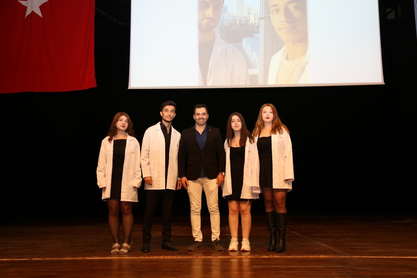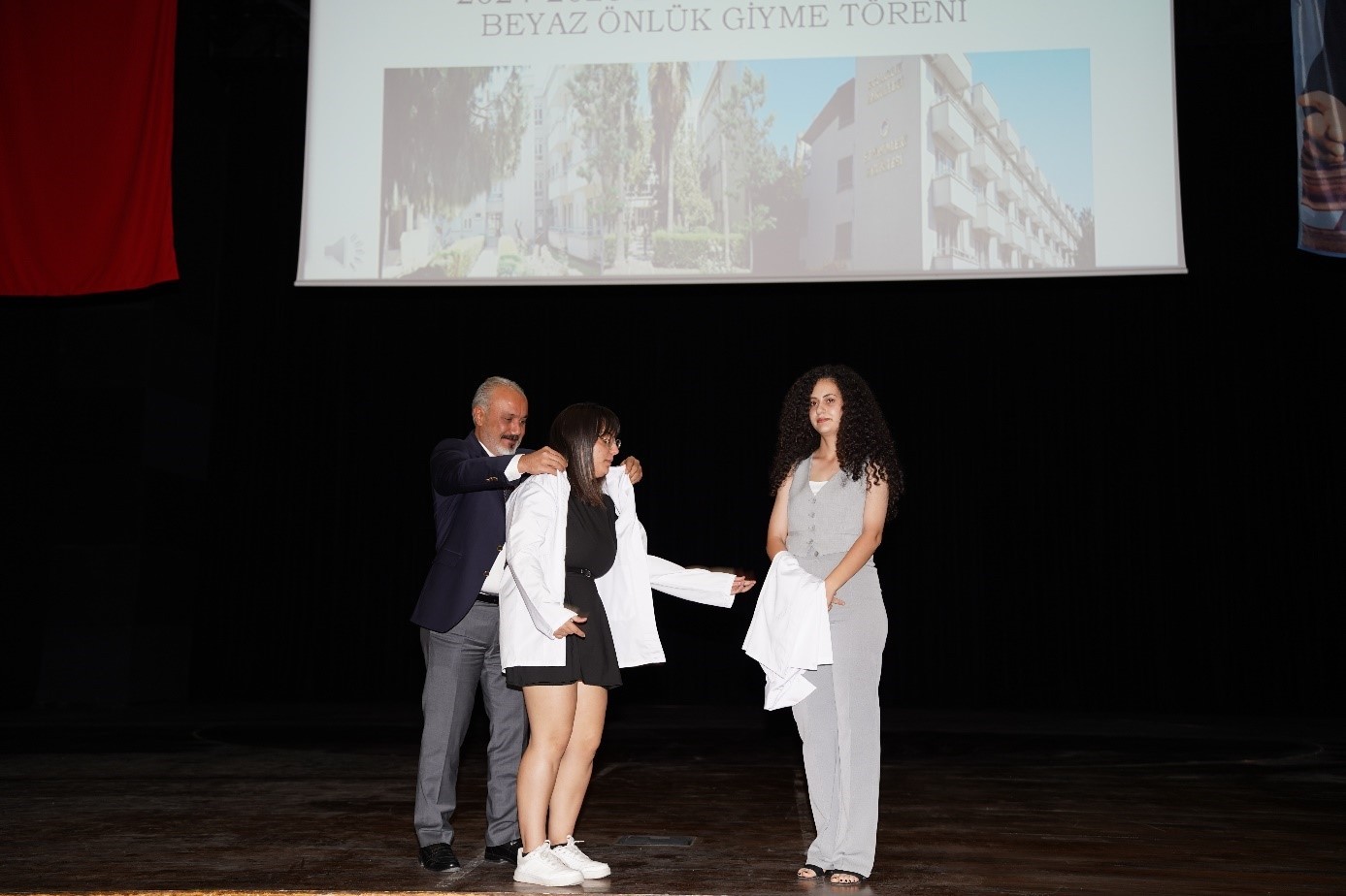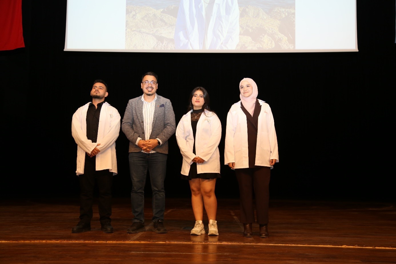 Rektör Yardımcımız Prof. Dr. Mehmet İsmail YAĞCI, Fakültemiz Dekanı Prof. Dr. Necmiye CANACANKATAN, TEB 25. Bölge Mersin Eczacı Odası Başkanı Uzm. Ecz. Aliye AKGÜL AYDIN, Güney Ecza Kooperatifi Yönetim Kurulu Başkanı Ecz. Tarkan BİR, Fakültemiz öğretim elemanları ve mezun eczacıları tarafından  tarafından Fakültemize yeni başlayan 1. Sınıf öğrencilerimize beyaz önlükleri giydirildi.