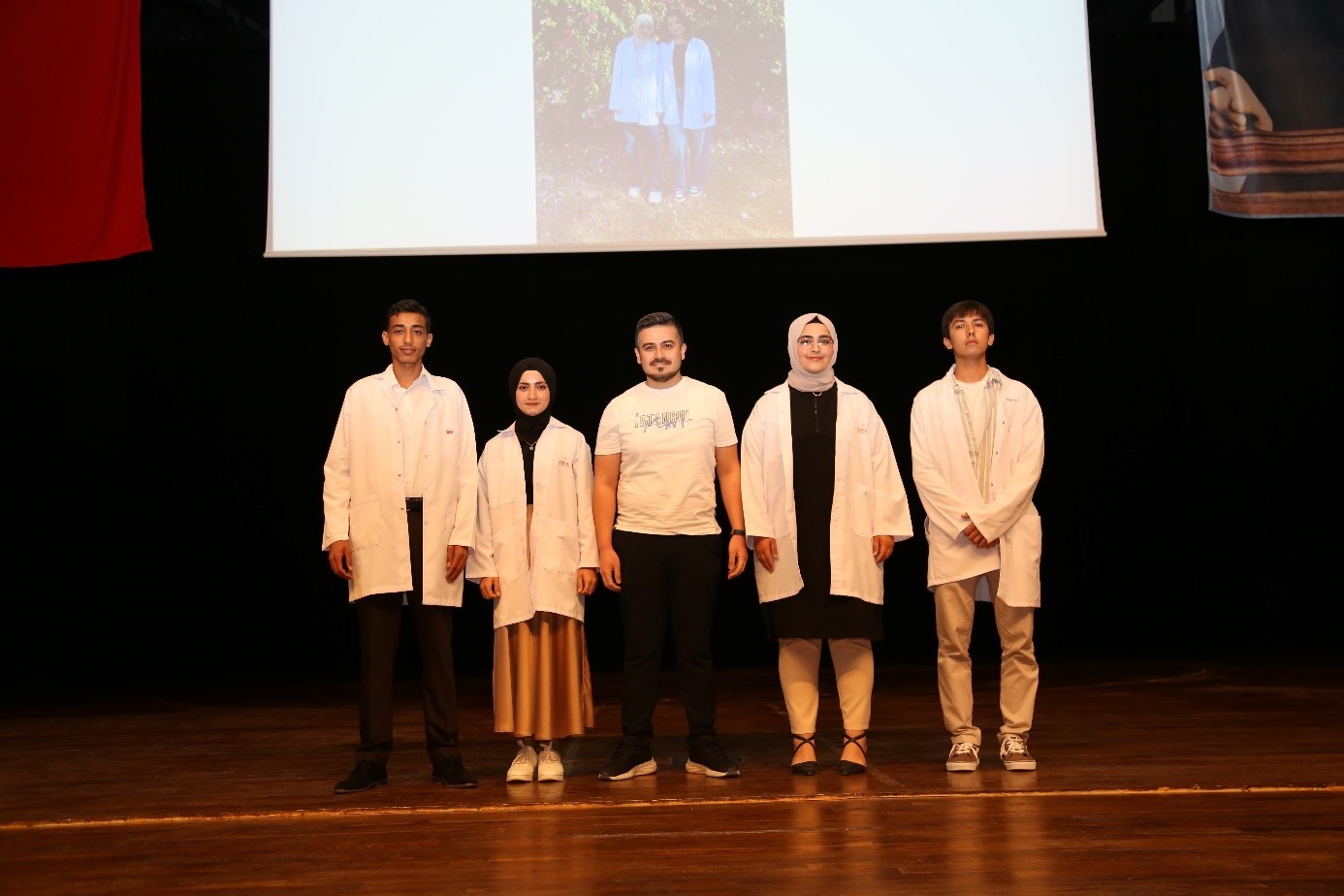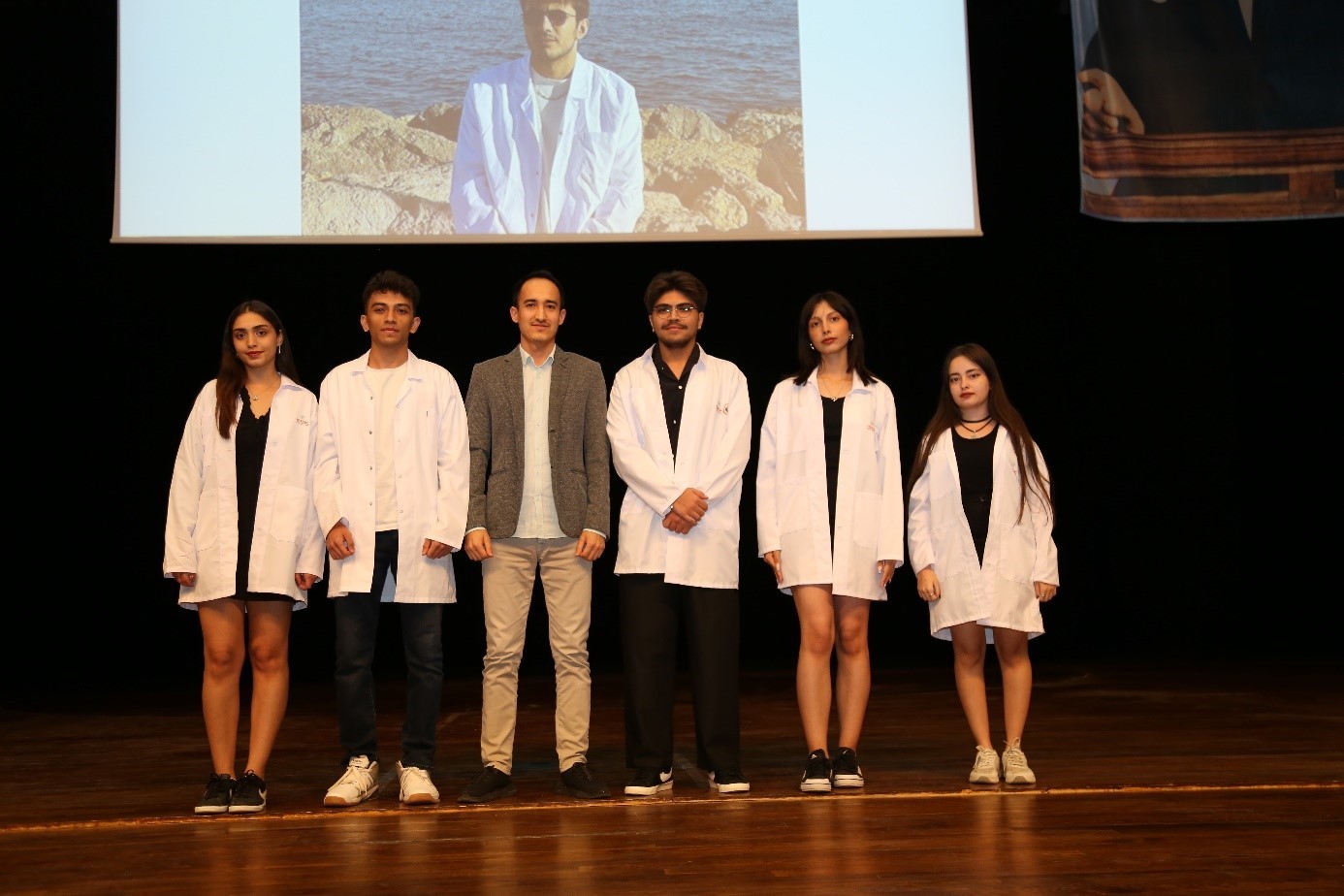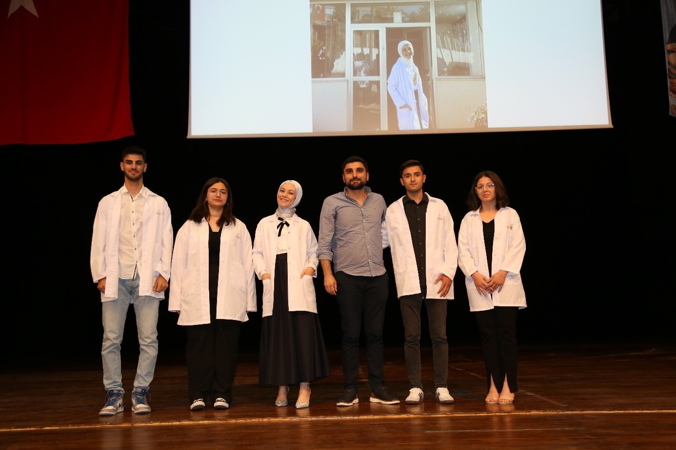Öğrencilerimiz adına konuşan 5. sınıf öğrenci temsilcisi Şeyhmus ATIZ ise Üniversitemiz öğrencisi olarak beş yıldan neler yaşadığını anlatarak beyaz önlük giyecek genç meslektaşlarına bazı tavsiyelerde bulundu. Konuşmaların ardından beyaz önlük giyme törenine geçildi.