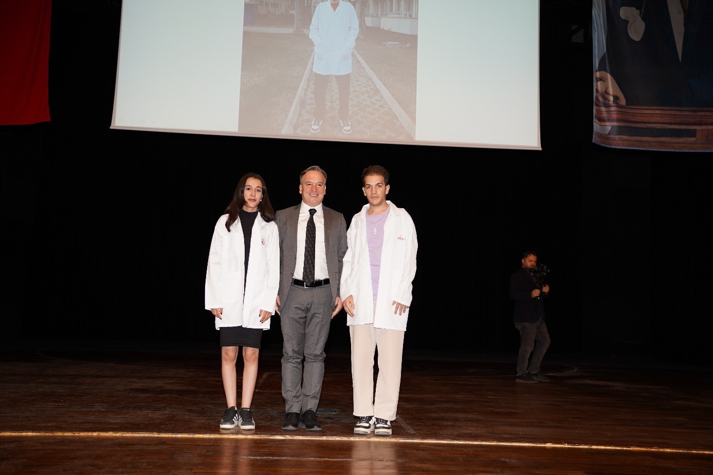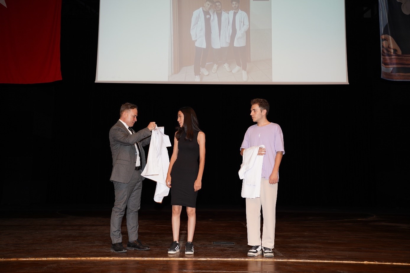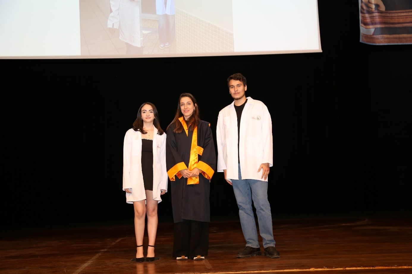 Öğrencilerimiz adına konuşan 5. sınıf öğrenci temsilcisi Şeyhmus ATIZ ise Üniversitemiz öğrencisi olarak beş yıldan neler yaşadığını anlatarak beyaz önlük giyecek genç meslektaşlarına bazı tavsiyelerde bulundu. Konuşmaların ardından beyaz önlük giyme törenine geçildi.