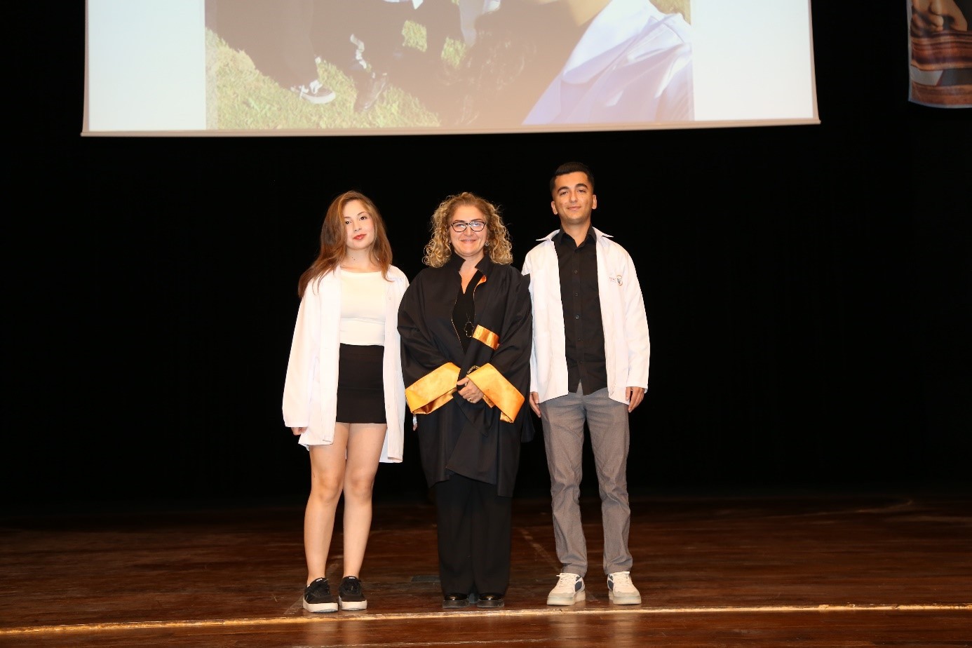 Türkiye’deki 59 Eczacılık Fakültesi içerisinden 6 yıllığına akredite olan 14 Eczacılık Fakültesi’nden birinin Üniversitemiz Eczacılık Fakültesi olduğunu aktaran Prof. Dr. Necmiye CANACANKATAN, bu durumunun Fakültemizin büyük bir başarısı olduğunu söyledi. Prof. Dr. Necmiye CANACANKATAN, "Fakültemiz Türkiye Yeterlilikler Çerçevesi (TYÇ) logosuna da sahiptir. Fakültemiz, mezunlarını, çalışanlarını toplum yaşamı boyunca öğrenme, bütünleştirme ile ulusal ve uluslararası tanınırlığı bulunan ilaç ve hasta odaklı eğitimi benimseyen ve başarılarını kanıtlamış güçlü bir eğitim kurumudur. Değerli velilerimiz bugün beyaz önlük giyerek mesleklerine ilk adımlarını atacak olan evlatlarınız artık bizlere sizin emanetinizdir. Sevgili öğrenciler, beş yıllık eğitim sürecinizi en iyi şekilde değerlendirerek sağlıklı, mutlu ve başarılı bir şekilde tamamlamanızı diliyorum." şeklinde konuştu.