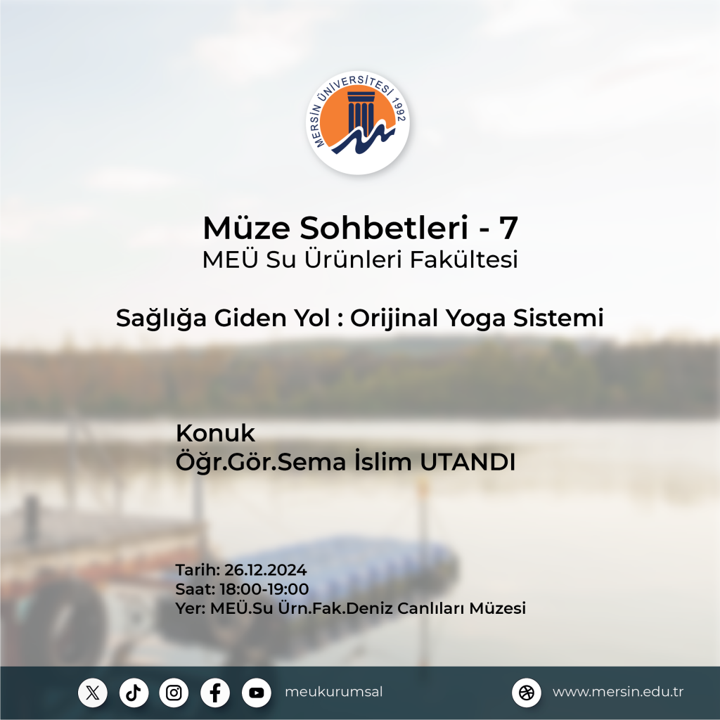 Bu ayki sohbetin konuğu, Üniversitemiz Öğretim Görevlisi Sema İslim UTANDI. “Deniz Canlıları Müzemizde Sağlığa Giden Yol: Orijinal Yoga Sistemi” başlıklı bu keyifli etkinlikte, yoga ve sağlığın deniz canlıları ile ilişkisine dair ilham verici bir yolculuğa çıkacağız.
