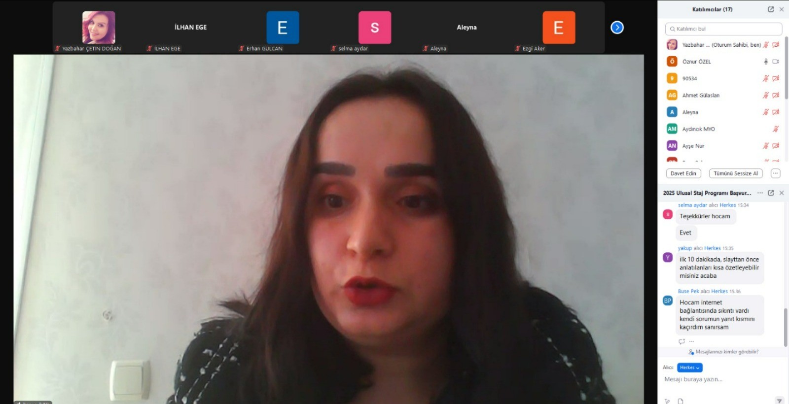 Seminerde, 2025 Ulusal Staj Programı’nın başvuru süreci hakkında ayrıntılı bilgiler verildi ve öğrencilerin soruları cevaplandırıldı. Prof. Dr. İlhan Ege, başvurularda dikkat edilmesi gereken kriterler, programın sunduğu fırsatlar ve öğrencilerin kariyer gelişimlerine nasıl katkı sağlayabileceği konusunda önemli açıklamalarda bulundu. Öğr. Gör. Öznur Özel ise başvuru adımlarını detaylı bir şekilde açıkladı ve öğrencilere stajyerlik sürecinde başarılı olabilmeleri için ipuçları verdi.