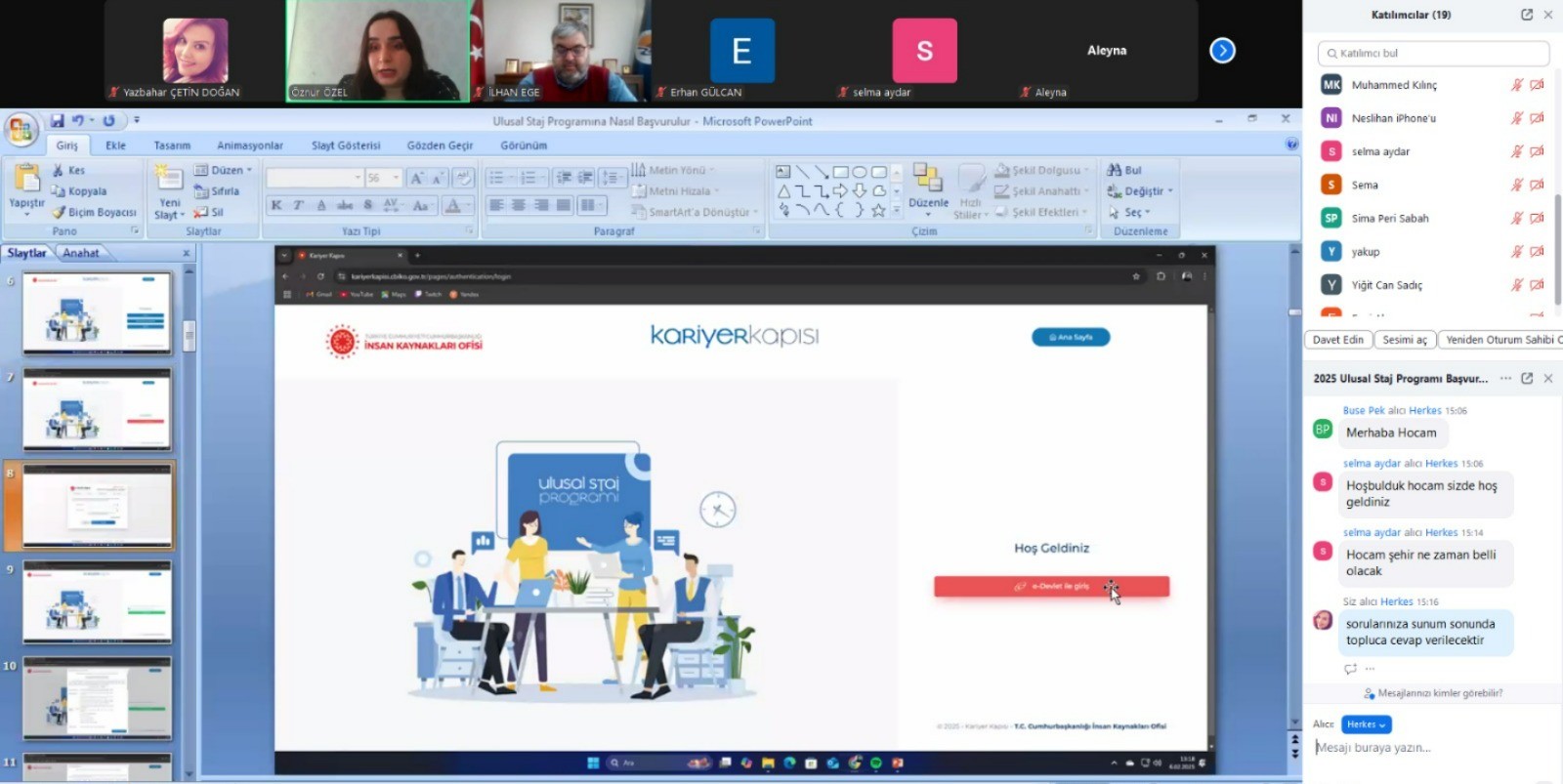 2025 Ulusal Staj Programı Başvuru Süreci ve Önemli Bilgiler Konusunda Çevrimiçi Seminer Düzenlendi