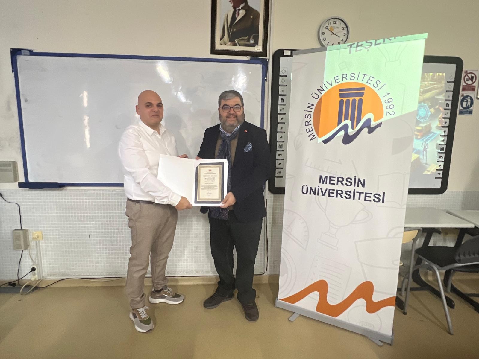 Seminerin sonunda, Sosyal Bilimler Meslek Yüksekokulu Müdürü Prof. Dr. İlhan Ege, konunun önemine dikkat çekerek kısa bir konuşma yaptı ve Halil Cem İvegen’e teşekkür belgesi takdim etti. Prof. Dr. İlhan Ege yapay zekanın iş yaşamı üzerindeki etkilerinin giderek arttığını ve bu tür eğitimlerin öğrencilere bu dönüşümü anlamada önemli fırsatlar sunduğuna vurgu yaptı.