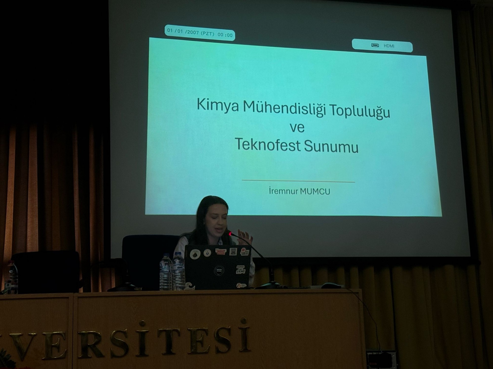 - Etkinlik; Mühendislik Fakültesi Dekanı aynı zamanda Kimya Mühendisliği öğretim üyesi Prof. Dr. Ayla ÖZER'in açılış konuşmasıyla başlamış olup, devamında bölüm başkanı Prof. Dr. Tonguç ÖZDEMİR bölümümüz hakkında öğrencilere bilgilendirme yapmıştır. Ardından TMMOB Kimya Mühendisleri Odası temsilcileri konuşmalarını gerçekleştirmiştir. Son olarak ise, bölüm öğrencilerimizden İremnur MUMCU Kimya Mühendisliği Topluluğu ve Teknofest deneyimi ile ilgili öğrencilerimize bilgilendirme yapmıştır.