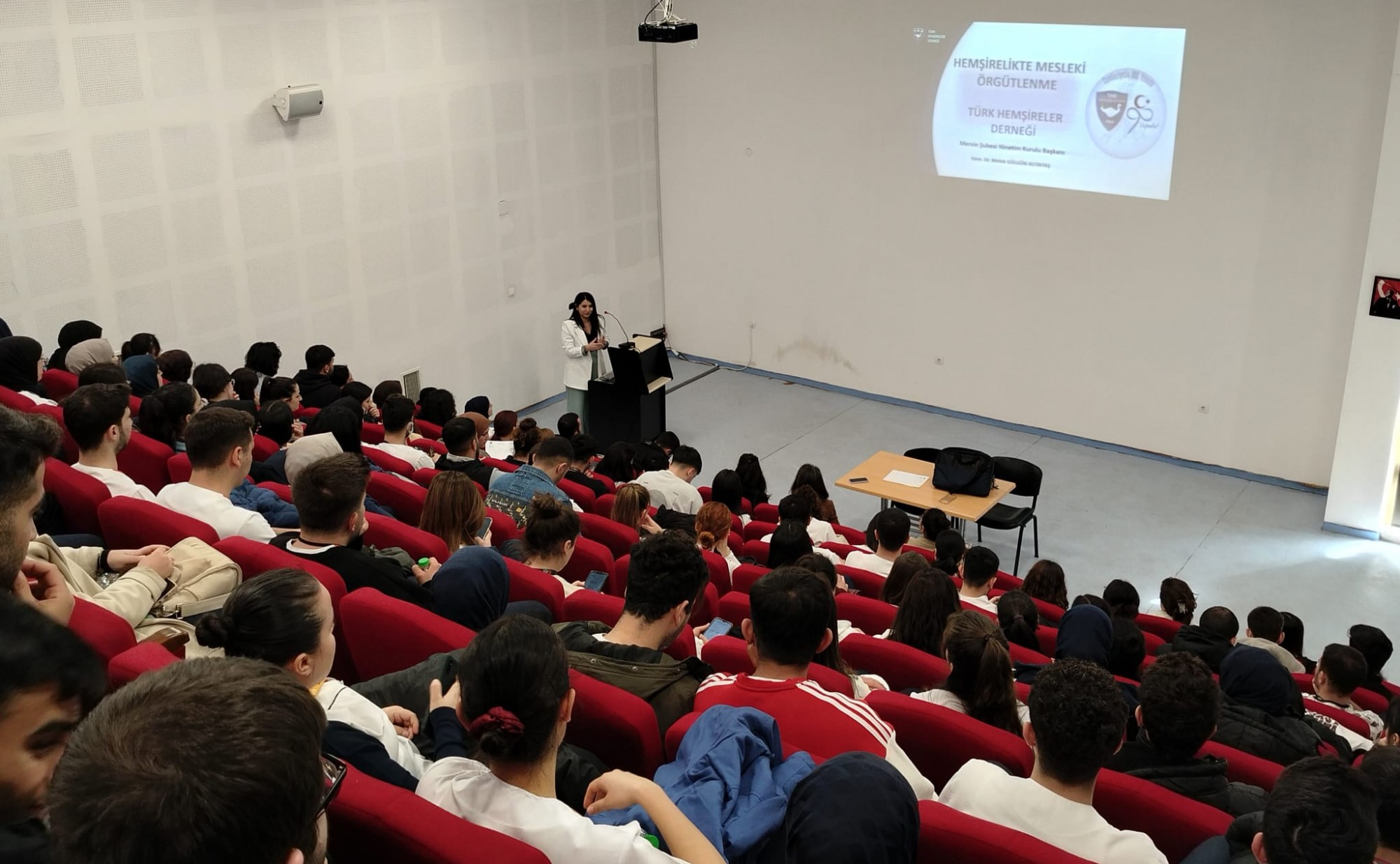 Hemşirelik Fakültesi Halk Sağlığı Hemşireliği Ana Bilim Dalı tarafından, 20 Şubat 2025 tarihinde Mersin Üniversitesi Tıp Fakültesi Reşit Galip Konferans Salonu’nda fakültemizin son sınıf öğrencilerine “Lisansüstü Eğitim Süreçleri” ve “Mesleki Örgütlenmenin Önemi” konularına yönelik bilgilendirme eğitimi yapıldı. Türk Hemşireler Derneği (THD) Mersin Şube Başkanı Dr. Hem. Melek GÜLGÜN ALTINTAŞ, dernek çalışmalarını anlatarak mesleki örgütlülüğün önemini vurguladı. Fakültemiz Halk Sağlığı Hemşireliği Ana Bilim Dalı Öğretim Elemanı Arş. Gör. Ezgi ÖNEN EFECAN tarafından hemşirelikte akademik kariyerin önemi, lisansüstü eğitime başvuru koşulları anlatıldı ve sağlık bilimleri enstitü sayfasının tanıtımı yapıldı. Etkinlik öğrencilerden gelen soruların yanıtlanmasıyla sona erdi.