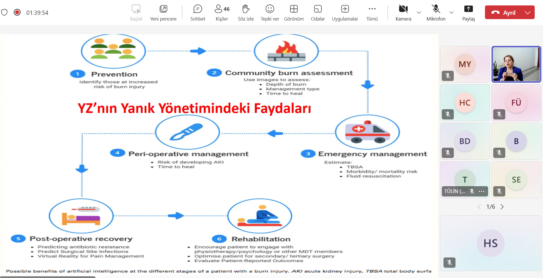 Mersin Üniversitesi ve farklı üniversitelerin Hemşirelik Fakültelerinden öğretim üyeleri, lisans ve lisansüstü öğrencilerinin katıldığı etkinlik, bir soru-cevap bölümüyle sona erdi. “Yanık Yönetiminde Makine Öğrenmesi ve Yapay Zeka Teknolojileri” başlıklı etkinlik, yoğun ilgi gördü. Bu tür etkinliklerin, sağlık alanında dijital dönüşüm sürecine katkı sağlamaya devam edeceği vurgulandı.