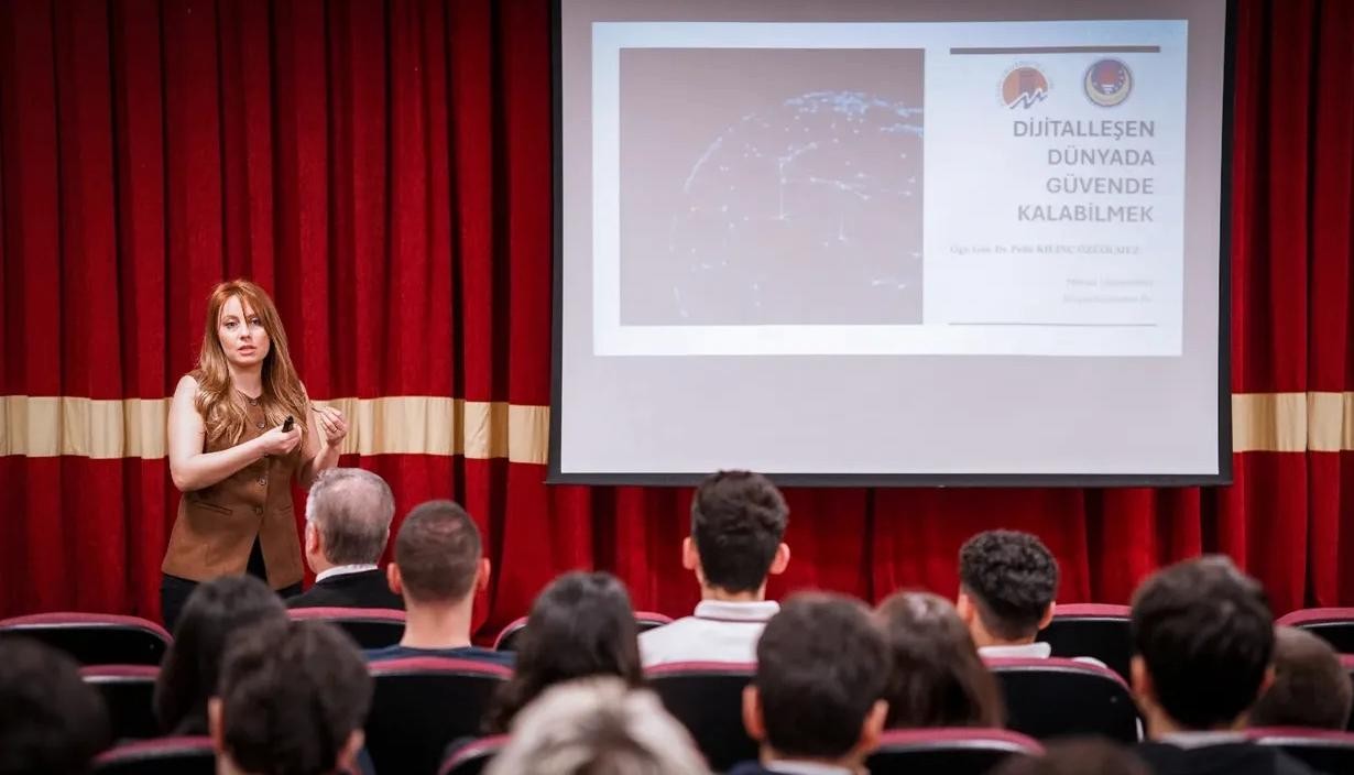 Yüksekokulumuz Sosyal Hizmetler Programı Öğretim Elemanı Öğr. Gör. Dr. Pelin Kılınç Özüölmez tarafından, TED Mersin Koleji öğrencilerine yönelik “Dijital Farkındalık Eğitimi” verildi. Sunumda; sanal ortamdaki görünmeyen tehditler, dijital mahremiyet, siber zorbalık, sosyal medya kullanımı, bilgi güvenliği ve dijital etik gibi dijital çağın önemli konuları ele alındı. Etkinlik, öğrencilerin yoğun ilgisi ve interaktif katılımıyla oldukça verimli geçti. Özellikle çocuk ve gençlerin dijital dünyada karşı karşıya kalabilecekleri risklere dikkat çeken eğitim, öğrencilerde dijital bilinç ve farkındalık oluşturmayı amaçladı. Öğr. Gör. Dr. Pelin Kılınç Özüölmez, teknolojinin sunduğu fırsatların yanı sıra, beraberinde getirdiği sorumluluklara da vurgu yaparak, bilinçli dijital vatandaş olmanın önemini vurguladı. Seminer sonunda öğrenciler, dijital ortamda karşılaşabilecekleri sorunlara karşı daha hazırlıklı ve bilinçli hareket etme yönünde önemli kazanımlar elde etti.