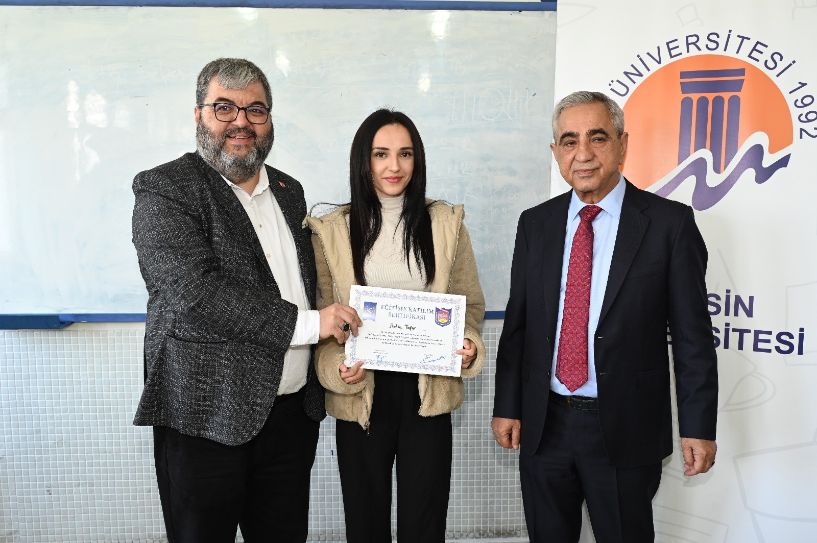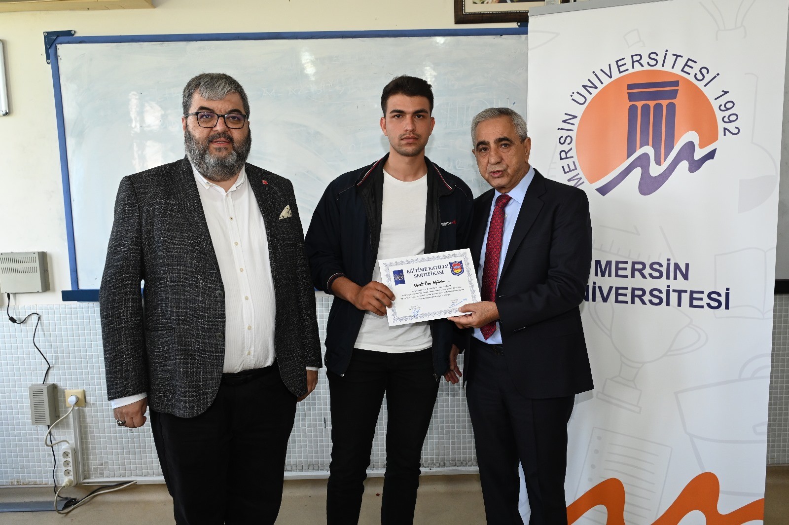 Törene, Sosyal Bilimler Meslek Yüksekokulu Müdürü Prof. Dr. İlhan Ege, Mersin Esnaf ve Sanatkarlar Odaları Birliği Başkanı ve aynı zamanda Mersin Şoförler ve Otomobilciler Odası Başkanı Veysel Sarı, Mersin Şoförler ve Otomobilciler Odası Eğitim Koordinatörü Hüseyin Taş, Lojistik Programı Öğretim Elemanı Öğr. Gör. Erdem Daşçı ve program öğrencileri katılım sağladı. Açılış konuşmasında Prof. Dr. İlhan Ege, öğrencilerin sektörel bilgilerle donatılmasının önemine dikkat çekerek, Mersin Şoförler ve Otomobilciler Odası'nın katkıları ile gerçekleştirilen bu eğitimlerin çok anlamlı olduğunu belirterek, Rektörümüz Prof. Dr. Erol Yaşar'ın her zaman  Üniversite-Şehir işbirliğine önem verdiğini ve desteklediğini vurgulayarak  Mersin Esnaf ve Sanatkarlar Odaları Birliği Başkanı Veysel Sarı'ya teşekkürlerini iletti. Mersin Esnaf ve Sanatkarlar Odaları Birliği Başkanı Veysel Sarı ise gençlerin sektöre hazırlanmasında bu tür eğitimlerin büyük önem taşıdığını  ve öğrencilere her zaman destek olmaya hazır olduklarını belirtti. Sarı, bu iş birliklerinin artarak devam edeceğinin altını çizdi. Tören, eğitim programına katılan öğrencilere belgelerinin verilmesi ile sona erdi.  Program sonunda Sosyal Bilimler Meslek Yüksekokulu Müdürü Prof. Dr. İlhan Ege'ye Mersin Şoförler ve Otomobilciler Odası Başkanı Veysel Sarı destekleri ve katkılarından dolayı teşekkür belgesi takdim etti.