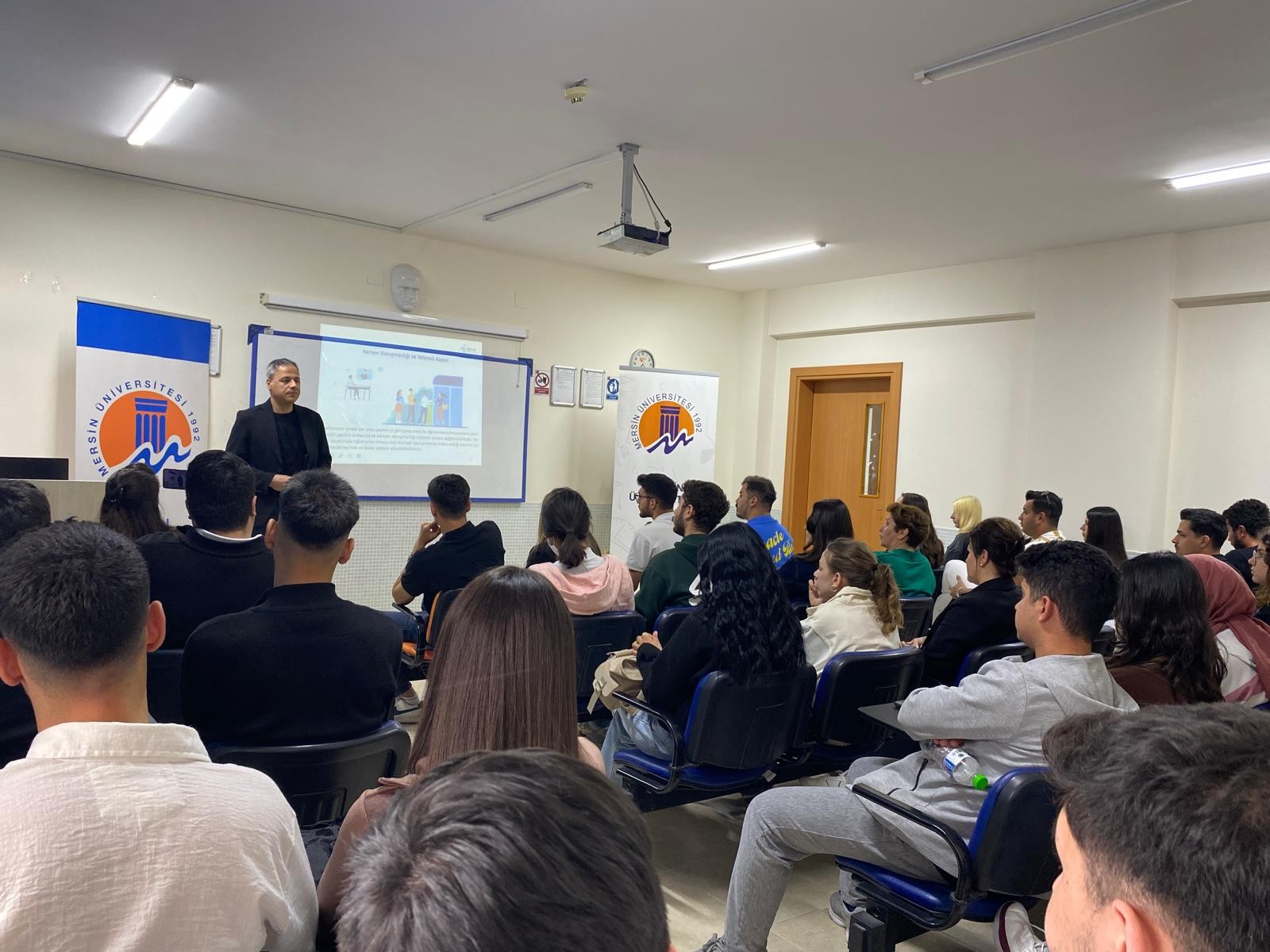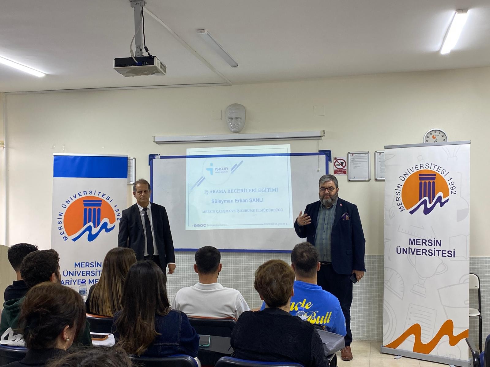 Mersin Üniversitesi Kariyer Merkezi tarafından düzenlenen Kariyer ve Meslek Danışmanlığı Eğitim Programı, 2025 yılında da yoğun katılımla devam ediyor. Sosyal Bilimler Meslek Yüksekokulu’nda gerçekleştirilen eğitim programı, öğrencilerden büyük ilgi gördü. Eğitimde, Mersin Çalışma ve İş Kurumu’ndan İş ve Meslek Danışmanları Süleyman Erkan Şanlı ve Ayşe Gül Bozkurt ile birlikte, Altun Lojistik İnsan Kaynakları Müdürü Murat Aslan da konuşmacı olarak yer aldı. Katılımcılara meslek seçimi, kariyer planlaması, staj ve iş bulma süreçlerine dair kapsamlı bilgiler sunan uzmanlar, iş dünyasına dair deneyimlerini paylaştı. Öğrencilerden gelen sorulara yanıt vererek, kariyer yolculuklarında dikkat edilmesi gereken noktalar hakkında önemli tavsiyelerde bulundular.