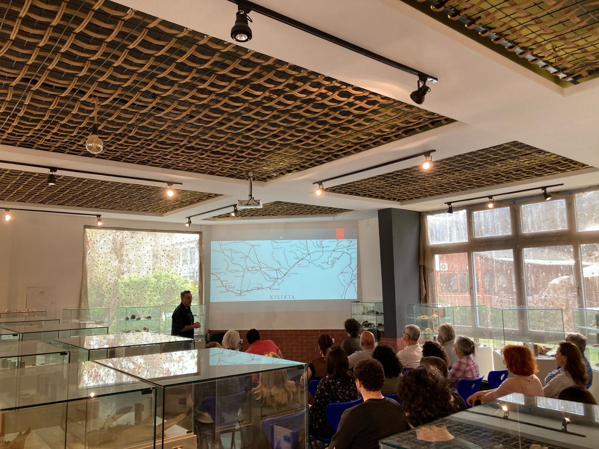 Etkinliğin konuğu olan Prof. Dr. Deniz Kaplan, Soloi-Pompeiopolis Antik Kenti ve Limanı hakkında kapsamlı bir sunum yaptı. Tarihi ve arkeolojik açıdan büyük öneme sahip olan bu antik kentin, Mersin’in kültürel mirasındaki yeri ve bölge tarihine katkıları ayrıntılı bir şekilde ele alındı.