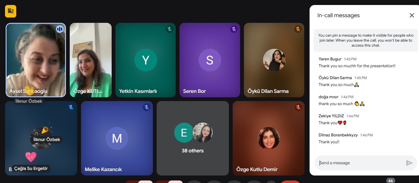 Bölümümüz tarafından dzüenlenen MERSİN ELT seminerler serisinin ikincisi mezunumuz Doç. Dr. Aysel SARICAOĞLU AYGAN'ın katılımıyla 17.04.2025 tarihinde gerçekleşti. Bölüm hocamız Yrd. Doç. Dr. Özge KUTLU DEMİR'in moderatörlüğünde gerçekleşen 'Being a Teacher in the Digital Age: How We should Change the Way We Teach English' başlıklı seminerde misafir hocamız dijital çağda İngilizce Öğretmeni olmak üzerine bölüm öğrencilerimize bilgiler verdi.