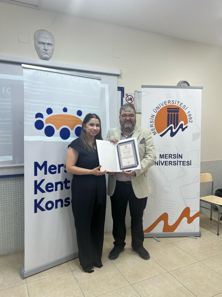Etkinliğin sonunda Sosyal Bilimler Meslek Yüksekokulu Müdürü Prof. Dr. İlhan Ege, konuşmacılara teşekkür belgelerini takdim etti. Ayrıca, desteklerinden dolayı Mersin Kent Konseyi Başkanı Alper Girgeç ve Kent Konseyi Sağlık Komisyonu Başkanı Sibel Karataş’a da teşekkür edilerek etkinlik sonlandırıldı.