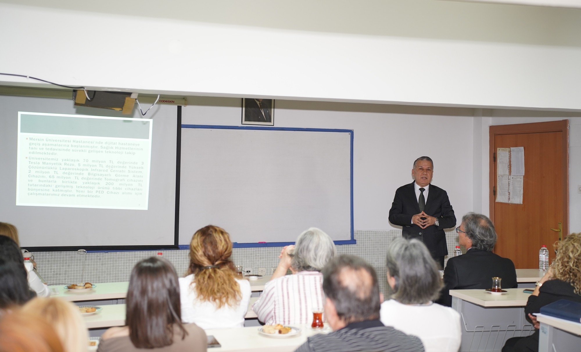 Daha sonra Sayın Rektörümüz Prof. Dr. Erol YAŞAR 2024 yılı içerisinde Üniversitemizde gerçekleştirilen akademik, idari ve fiziksel projeler, çalışmalar ve iyileştirmeler ile ilgili bilgilendirme yaptı. Fakültemiz öğretim elemanları ile sohbet ederek görüş alışverişinde bulundu.