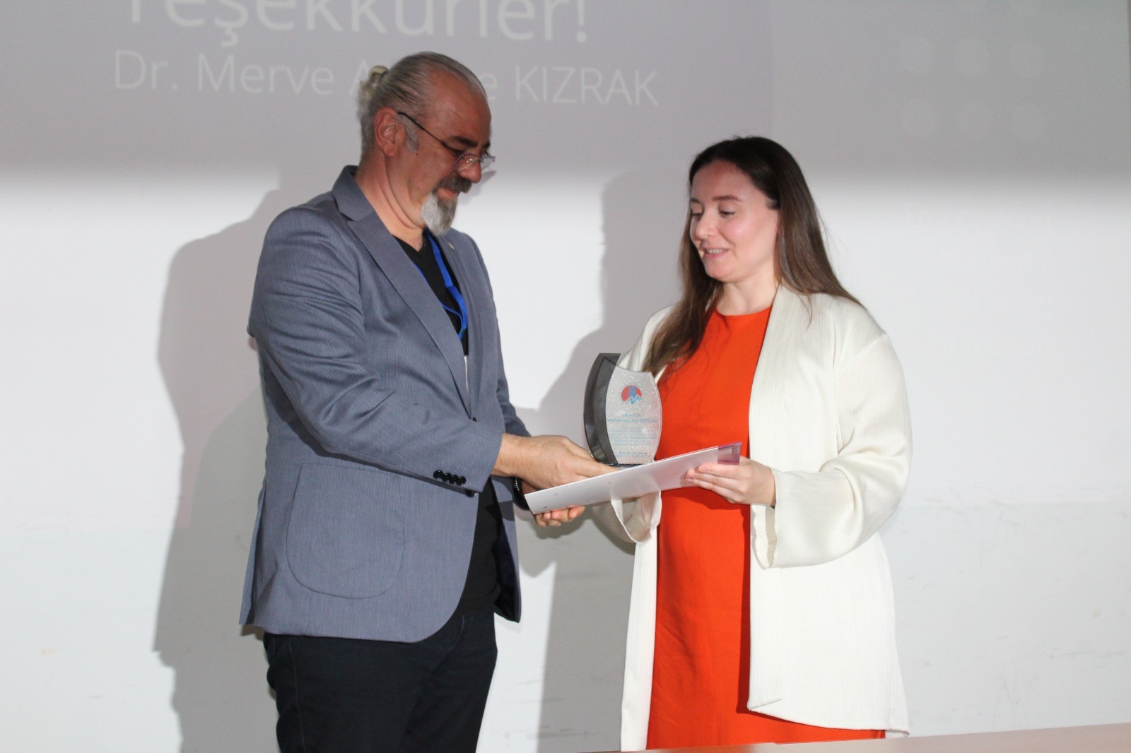 Etkinliğin sonunda Su Ürünleri Fakültesi Dekanı ve TTO Ofisi Akademik Birim Sorumlusu Prof. Dr. M. Tahir Alp tarafından Dr. Merve Ayyüce Kızrak’a  Ar-Ge Proje Pazarı 2025’e sunduğu katkıdan dolayı plaket ve teşekkür belgesi takdim etti.
