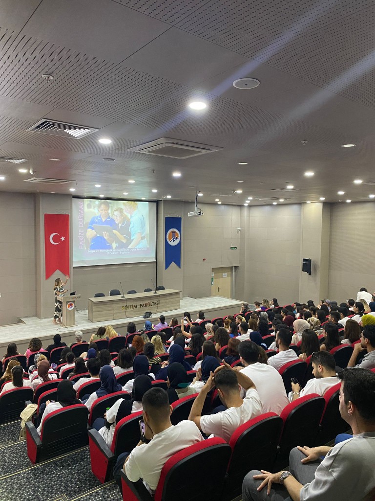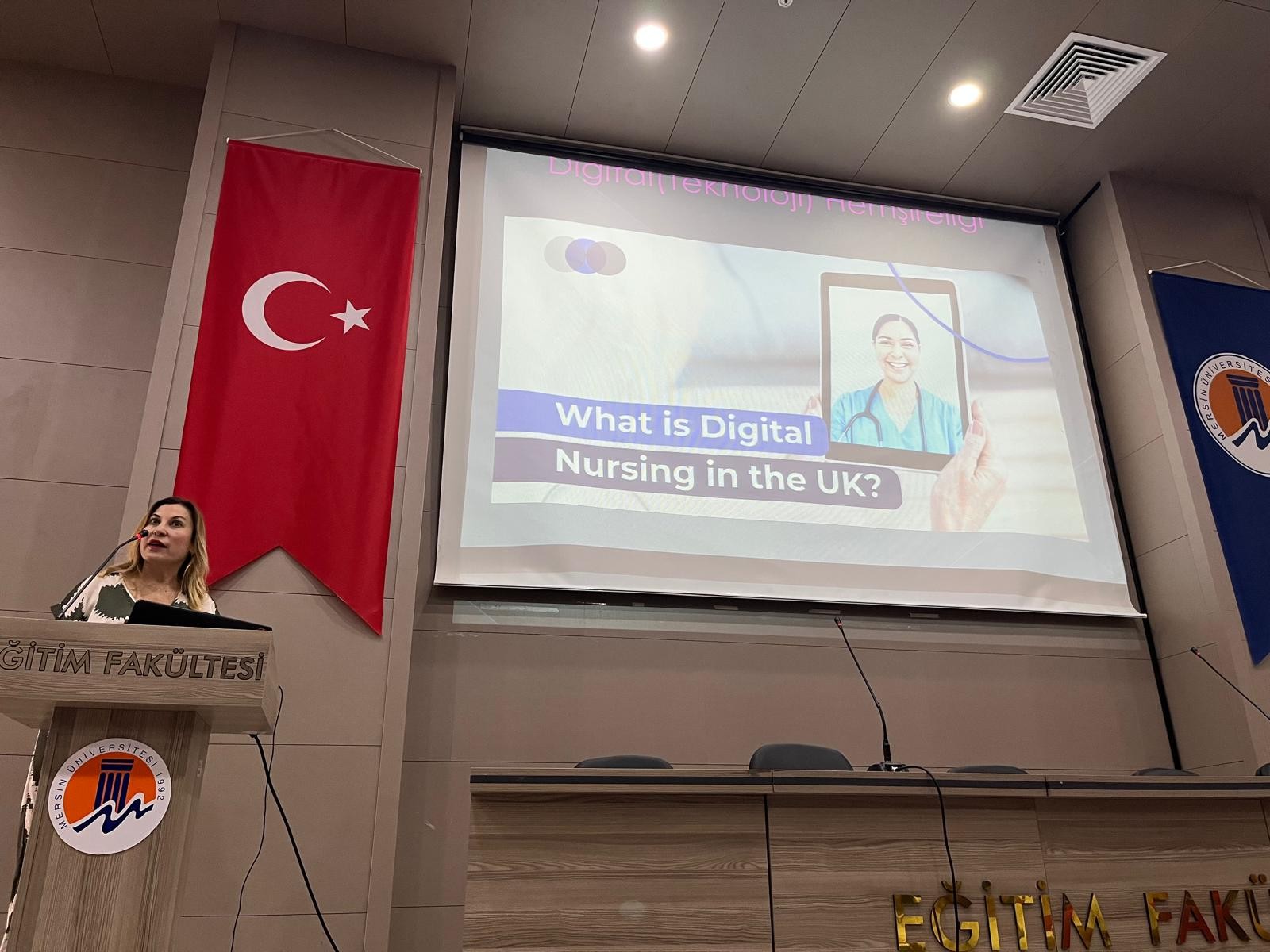 12-18 Mayıs Hemşirelik haftası etkinlikleri kapsamında öğretim elemanlarımız, öğrencilerimiz ve Türk Hemşireler Derneği Mersin Şubesi temsilcileri ve hemşire meslektaşlarımız ile gerçekleştirilen etkinlikte, Sayın Uzm. Hemşire Pakize DURMAZ İngiltere’de NHS hastanelerinde kullanılan yeni teknolojiler ve hemşirelikte yeni uzmanlık alanları hakkında bilgi verdi. Hemşirelik mesleğinin evrensel bir meslek olduğunu vurgulayan DURMAZ, Türkiye’de verilen hemşirelik eğitiminin Avrupa standartlarında olduğunu belirtti. Dinleyicilerin sorularını yanıtlayan DURMAZ Mersin Üniversitesinde bulunmaktan onur duyduğunu dile getirdi.