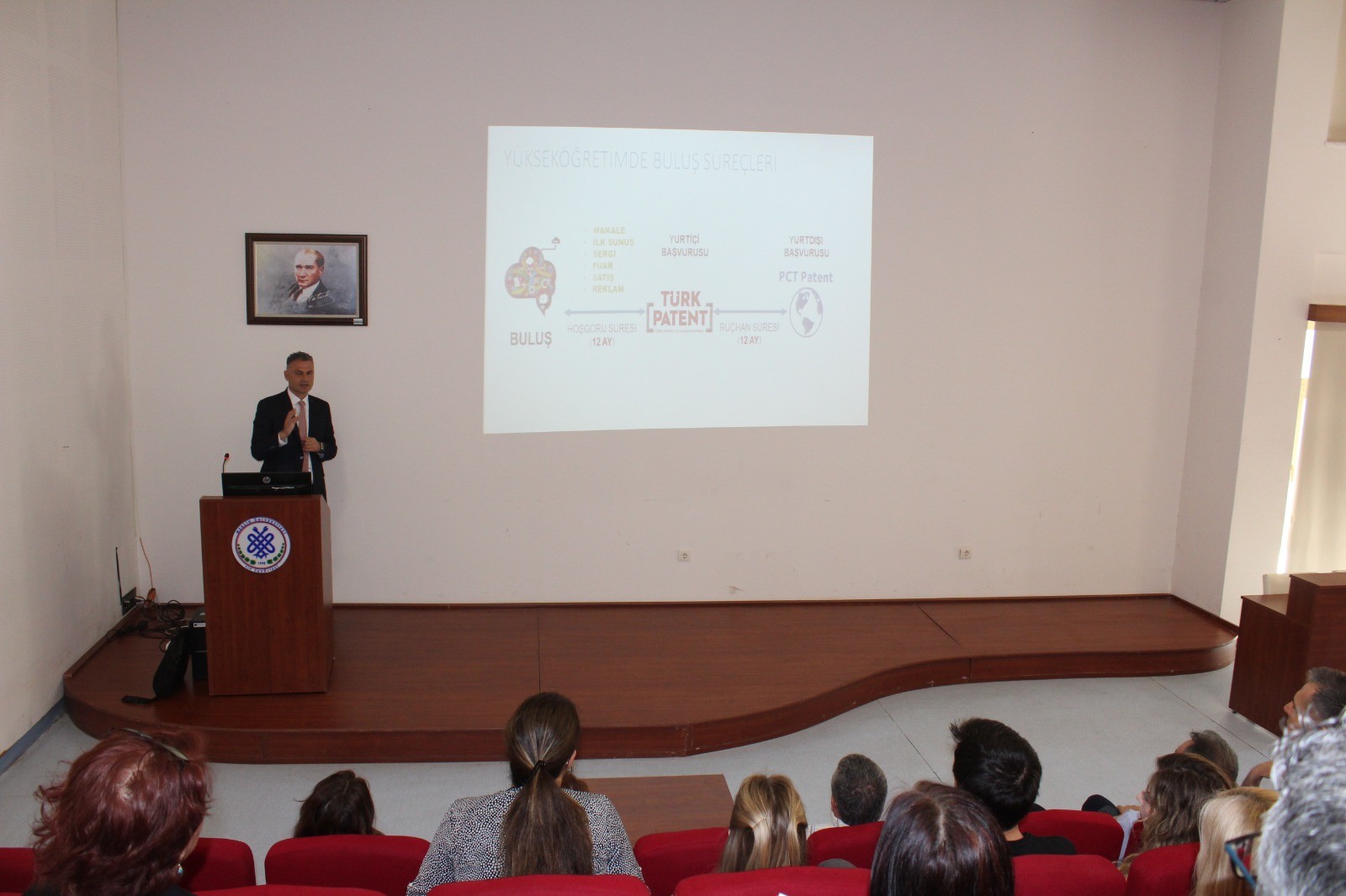 Mersin Üniversitesi Fikri ve Sınai Mülkiyet Hakları (FSMH) Sorumlusu Ramazan Duman ise konuşmasında patent başvurucu süreçleri hakkında katılımcıları bilgilendirdi. Teknoloji Transfer Ofisinin akademisyen, sanayici, girişimci ve öğrenciye yönelik çalışmalar yürüttüğünü ifade eden Duman “Mersin TTO beş ayrı modülden oluşmaktadır. Bunlar Farkındalık, Tanıtım, Bilgilendirme ve Eğitim, Proje Geliştirme, Üniversite-Sanayi İş Birliği, Fikri Sınai Mülkiyet Hakları, Girişimcilik ve Şirketleşme Modüllerdir.” diye konuştu.  Bir süreç yönetimi olan patentin mutlaka bir yenilik getirmesi gerektiğini kaydeden Duman, fikri mülkiyet hakları konusunda farkındalık oluşturmayı amaçladıklarını belirtti. Duman TTO’nun ayrıca buluşun tescil edilebilirlik ve tescil kapsamının belirlenmesi, patent ön araştırmasının yapılması ve ticarileşme potansiyelinin değerlendirilmesi faaliyetlerini yürüttüğünü sözlerine ekledi.