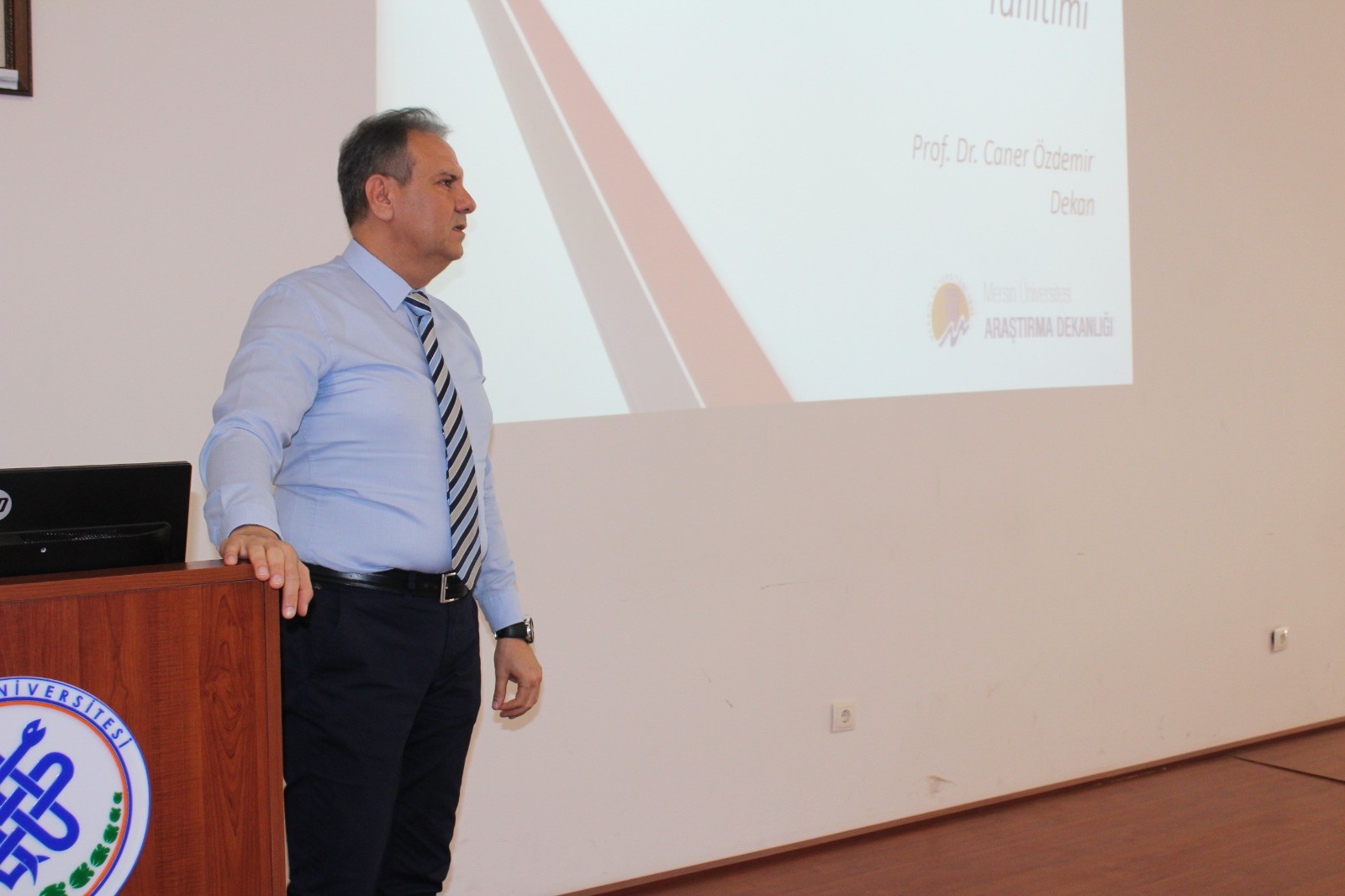 Toplantıda ilk olarak Araştırma Dekanı Prof. Dr. Caner Özdemir, yakın zamanda kurulan Araştırma Dekanlığı hakkında bilgi verdi. Araştırma Dekanlığının nihai amacının Mersin Üniversitesi’nde araştırma sistematiğini ve araştırma kültürünü oluşturmak olduğunu söyleyen Prof. Dr. Caner Özdemir, “Hedefimiz YÖK Araştırma Üniversitesi listesinde yer almak. Bu yöndeki araçlar ise bilimsel yayın, ulusal ve uluslararası projeler, patent, faydalı model ve endüstriyel tasarım, ulusal ve uluslararası akademik iş birliklerinin sayılarının artırılmasıdır.” dedi. Prof. Dr. Özdemir şu anda Türkiye’de 23 araştırma üniversitesinin olduğunu da ifade etti.