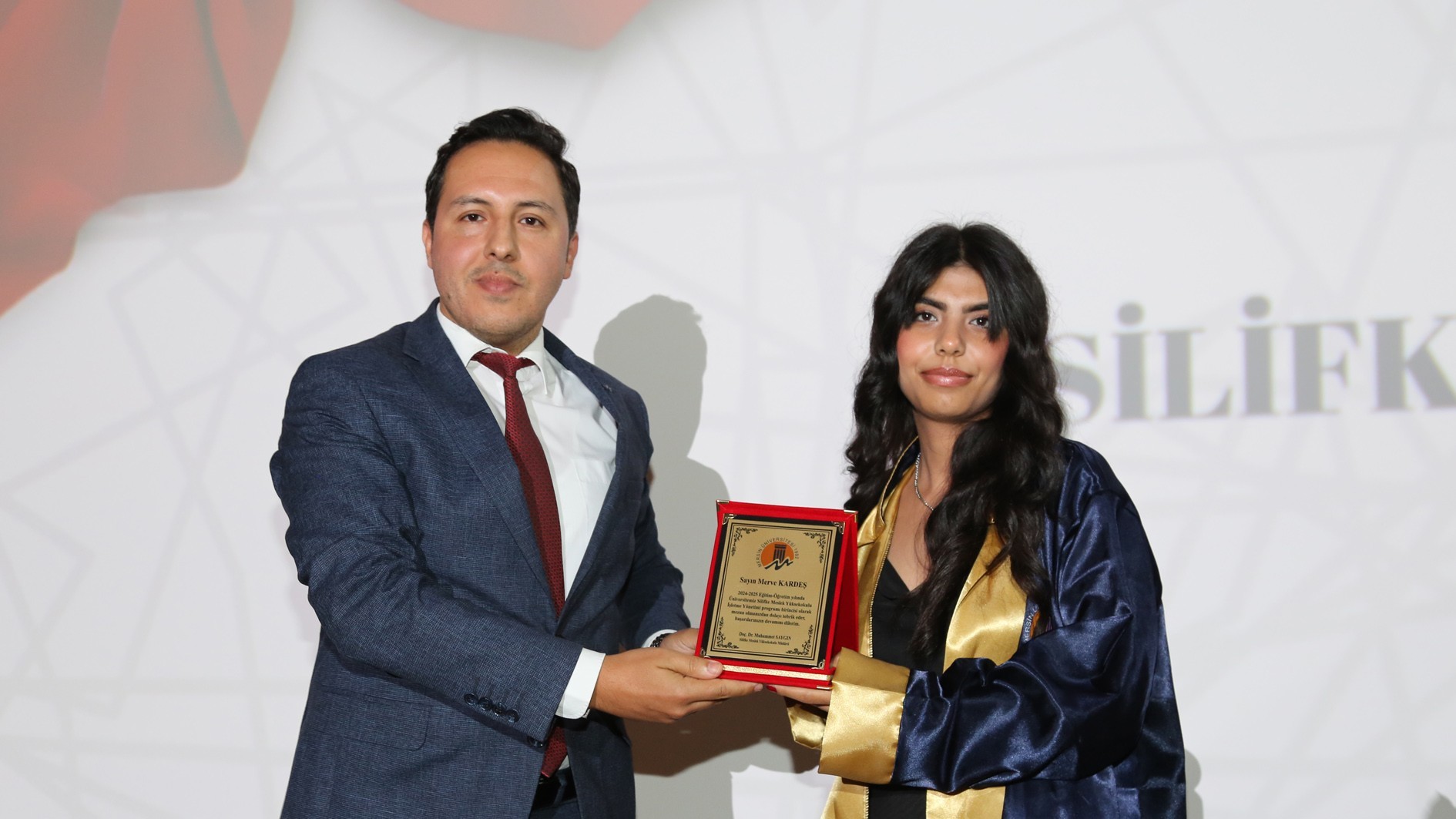 Törenin devamında, bölüm ve program birincilerine plaketleri takdim edildi. Program birincileri, kendileri için hazırlanan özel mezuniyet pastasını keserek bu anlamlı anı kutladılar.